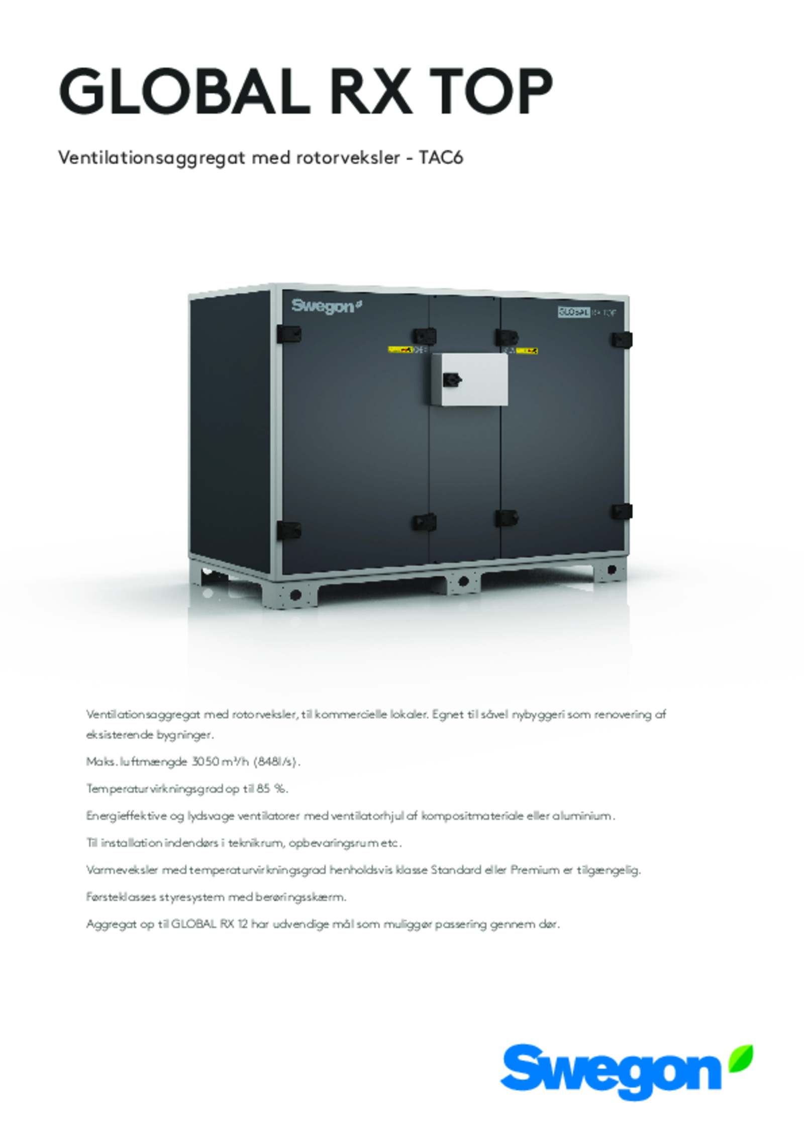 - Maks. luftmængde 3.050 m³/t (Ecodesign)