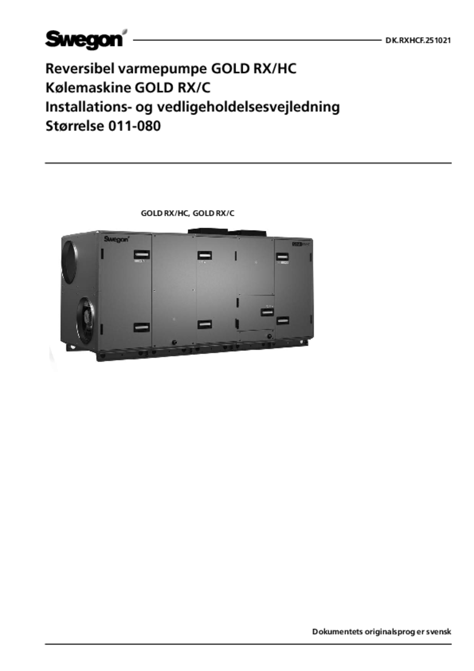| Reversibel varmepumpe/Kølemaskine, installations- og vedligeholdelsesvejledning (pdf 1.93MB) | GOLD RX/HC, GOLD RX/C | DV-manual | |