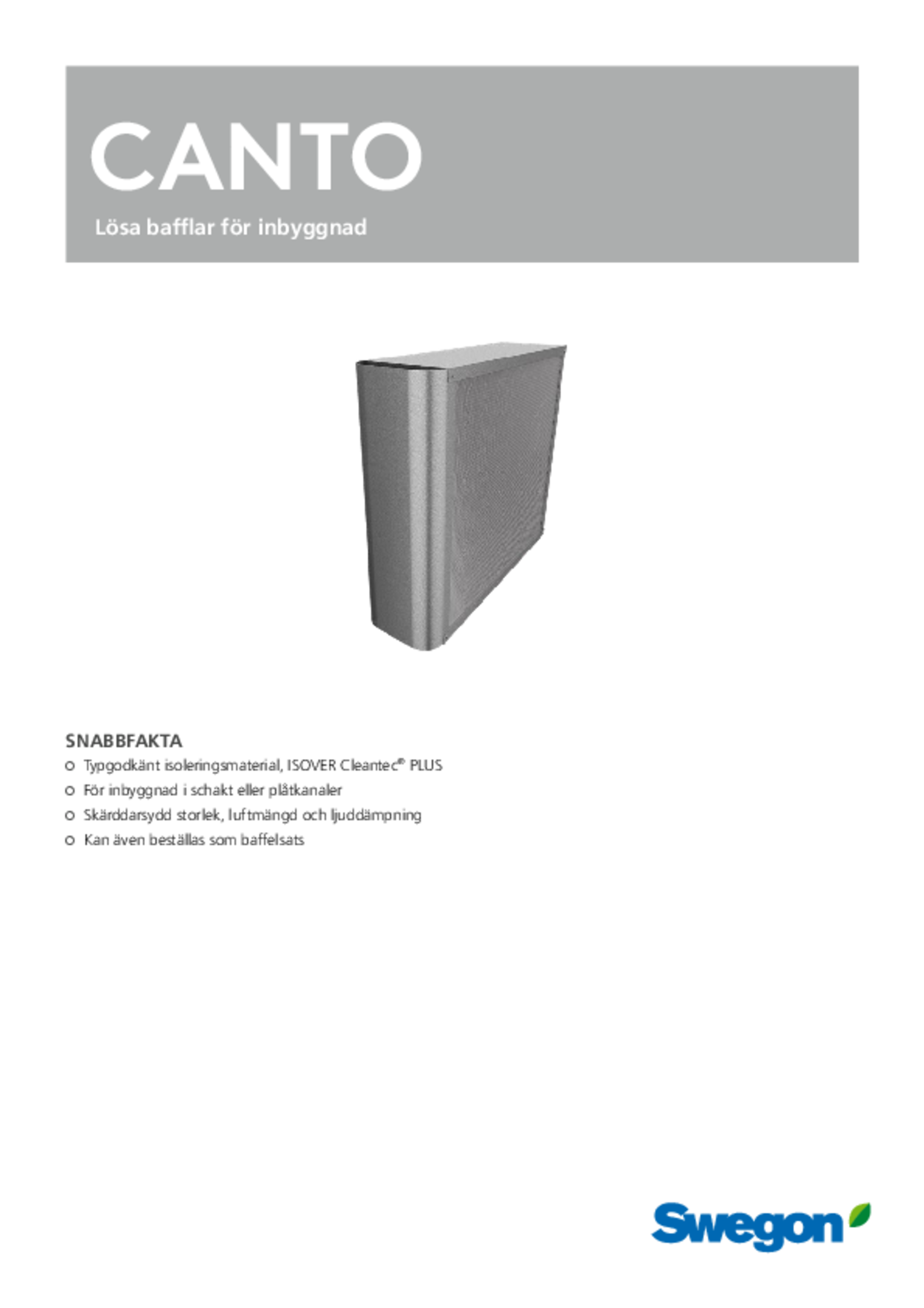 | Lösa bafflar för inbyggnad (pdf 332.74kB) | CANTO | Teknisk katalog | |