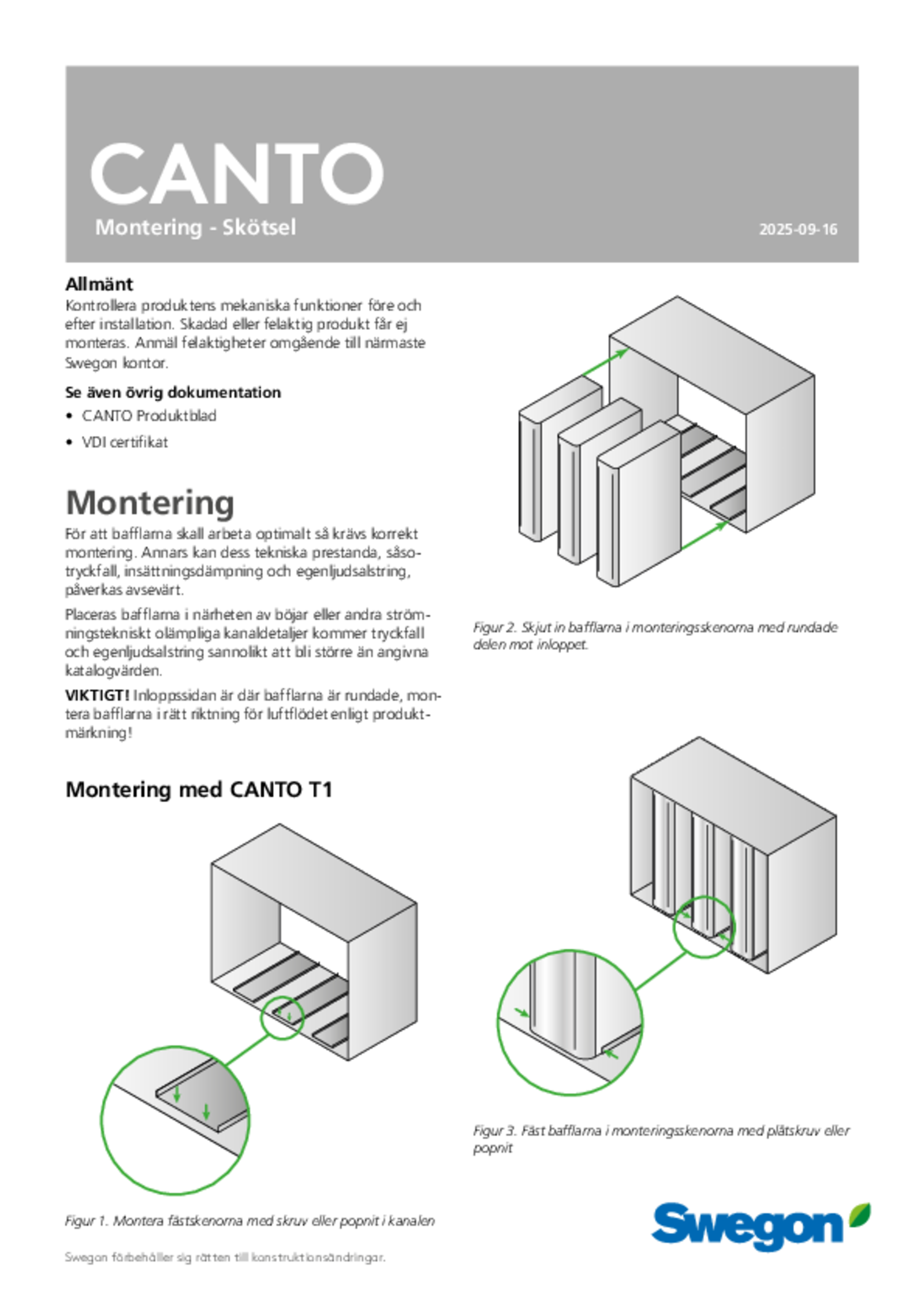 | Montering - Skötsel (pdf 410.72kB) | CANTO | DV-manual |