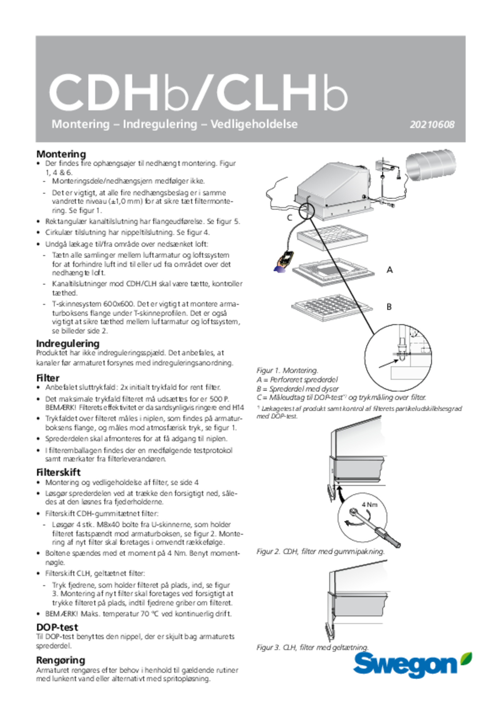 - Måleudtag til dyptest og trykmåling over filteret