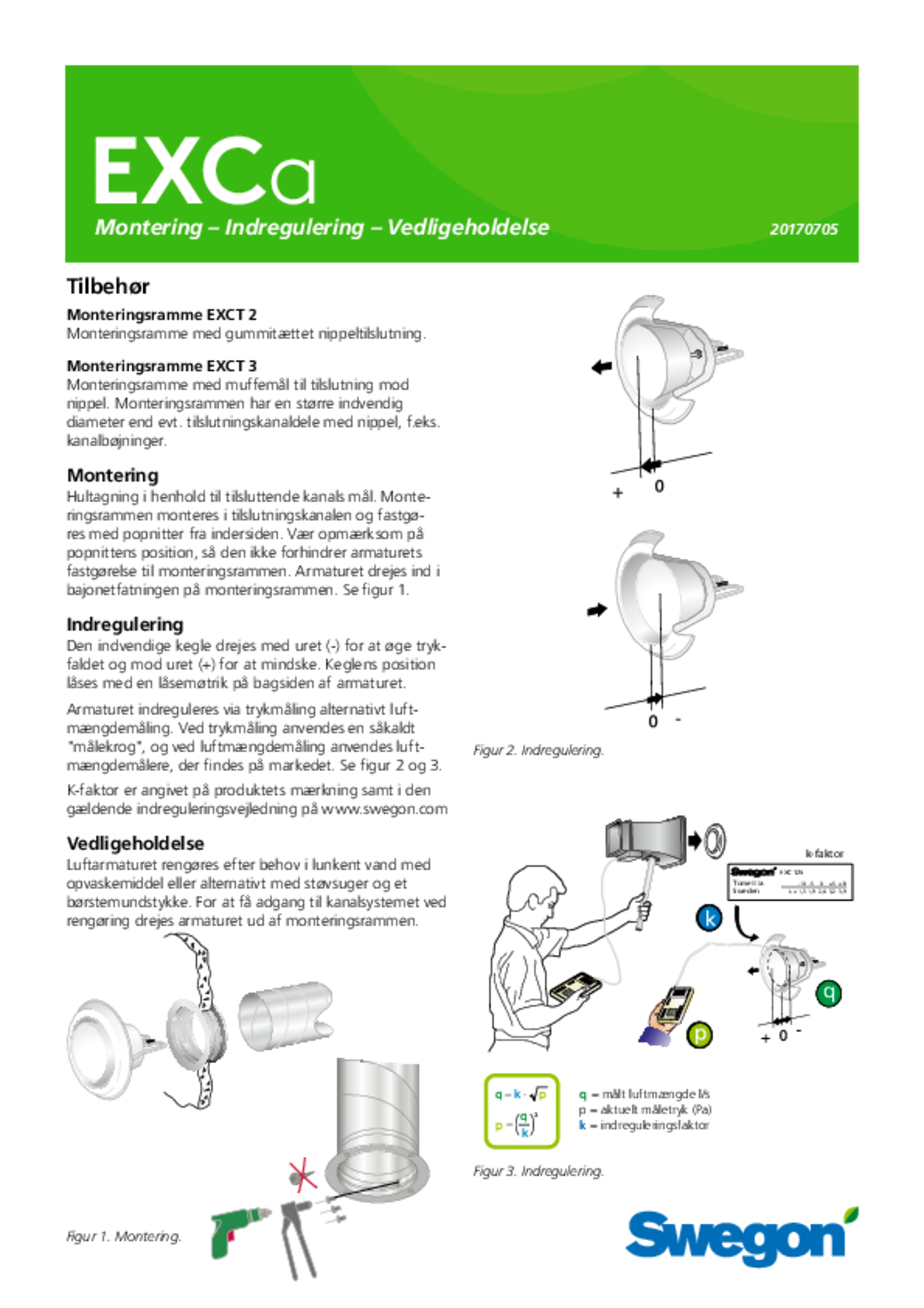 | Montering, indregulering, vedligeholdelse (pdf 362.52kB) | EXCa | DV-manual | |