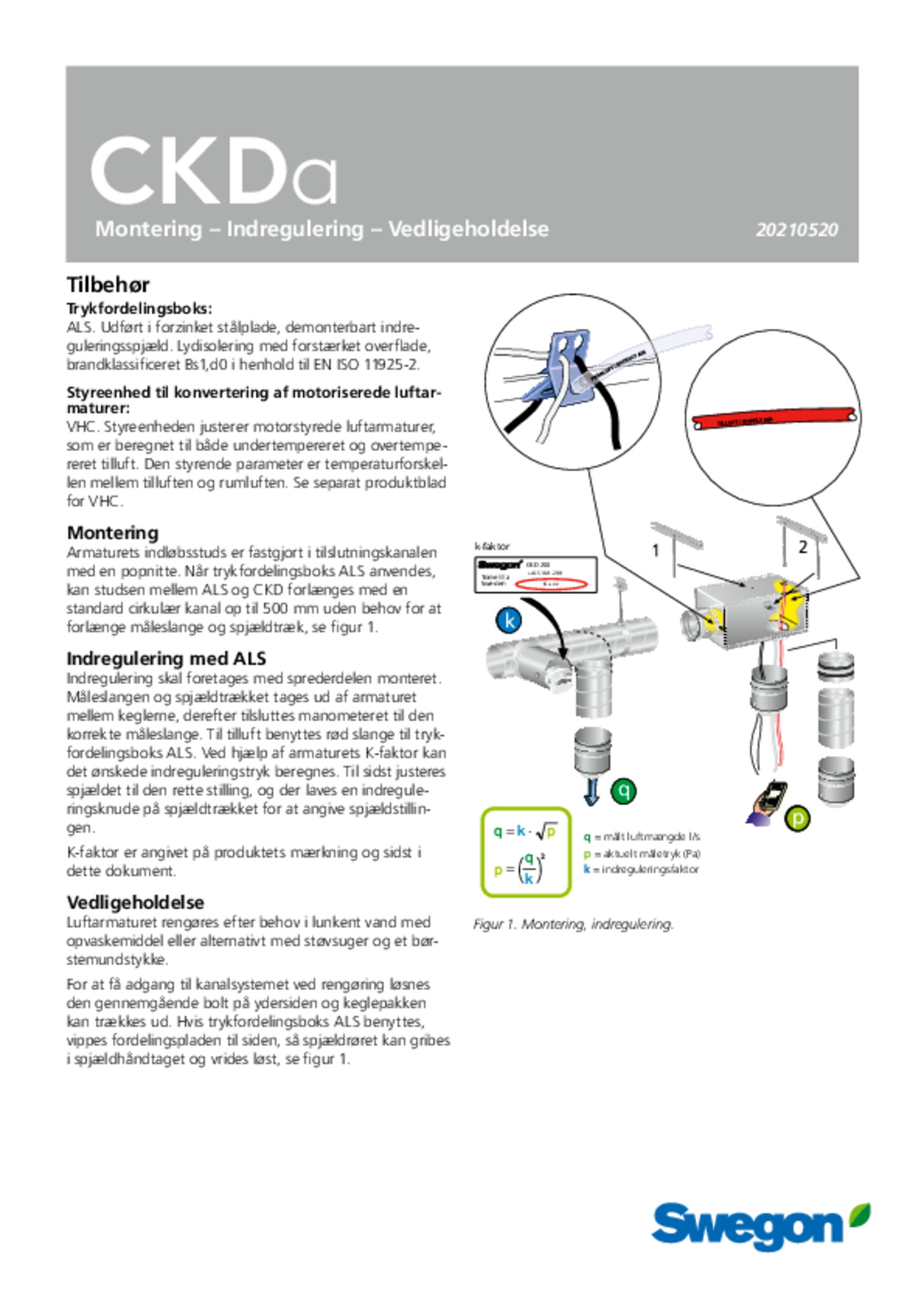 CKD er en cirkulær flerkonus-jetdyse til væg- eller loftmontering. Kan håndtere ekstremt store luftmængder ved lavt lydniveau. Velegnet til konstant eller variabel luftmængde. Kan benyttes til under- eller overtemperatur, og både vandret og lodret spredningsbillede er muligt. Velegnet til både komfort- og industrianlæg.
