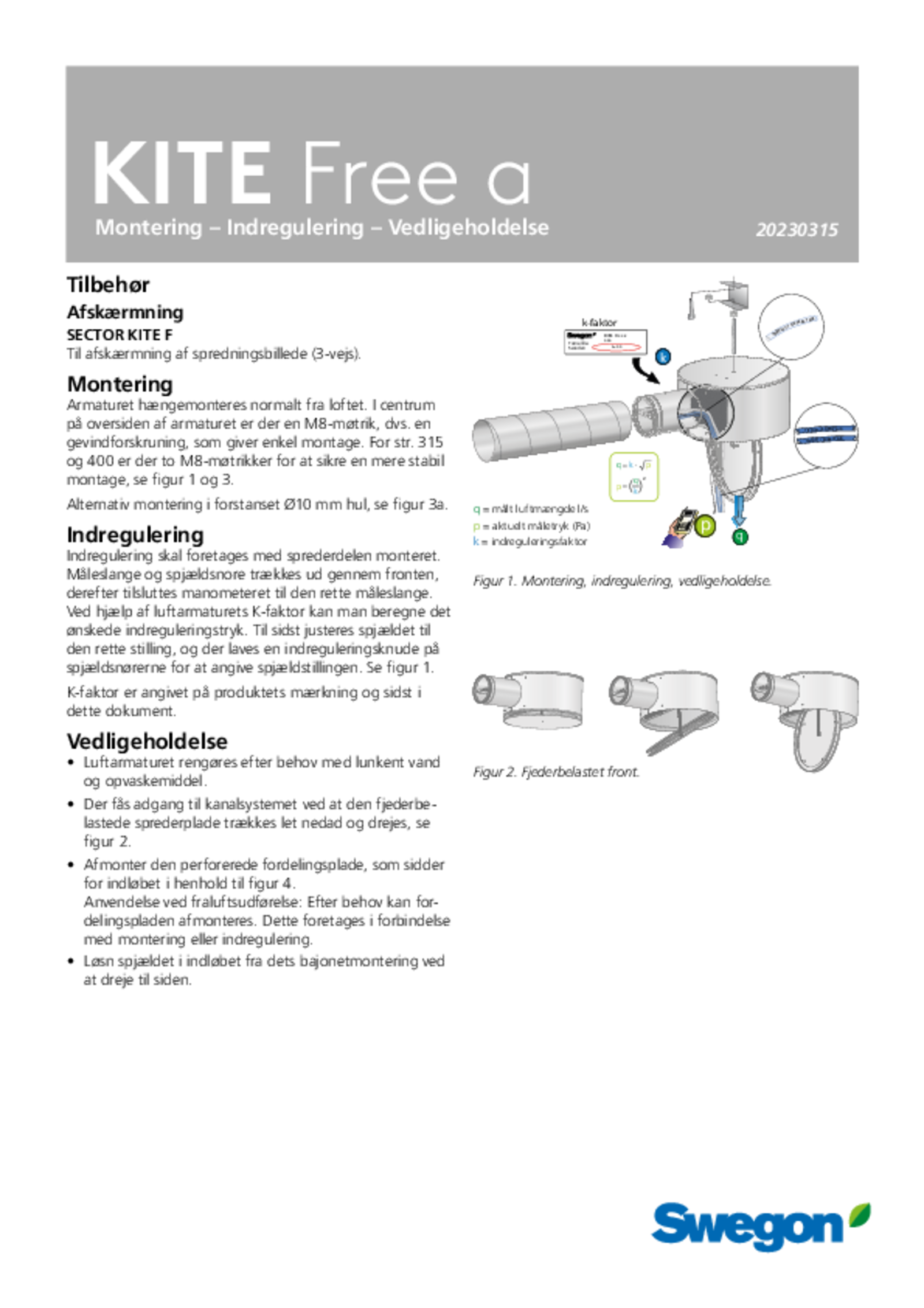 • Fordelingsplade kan efter behov afmonteres ved fraluftsystemer, dette klares let i forbindelse med * montering/indregulering