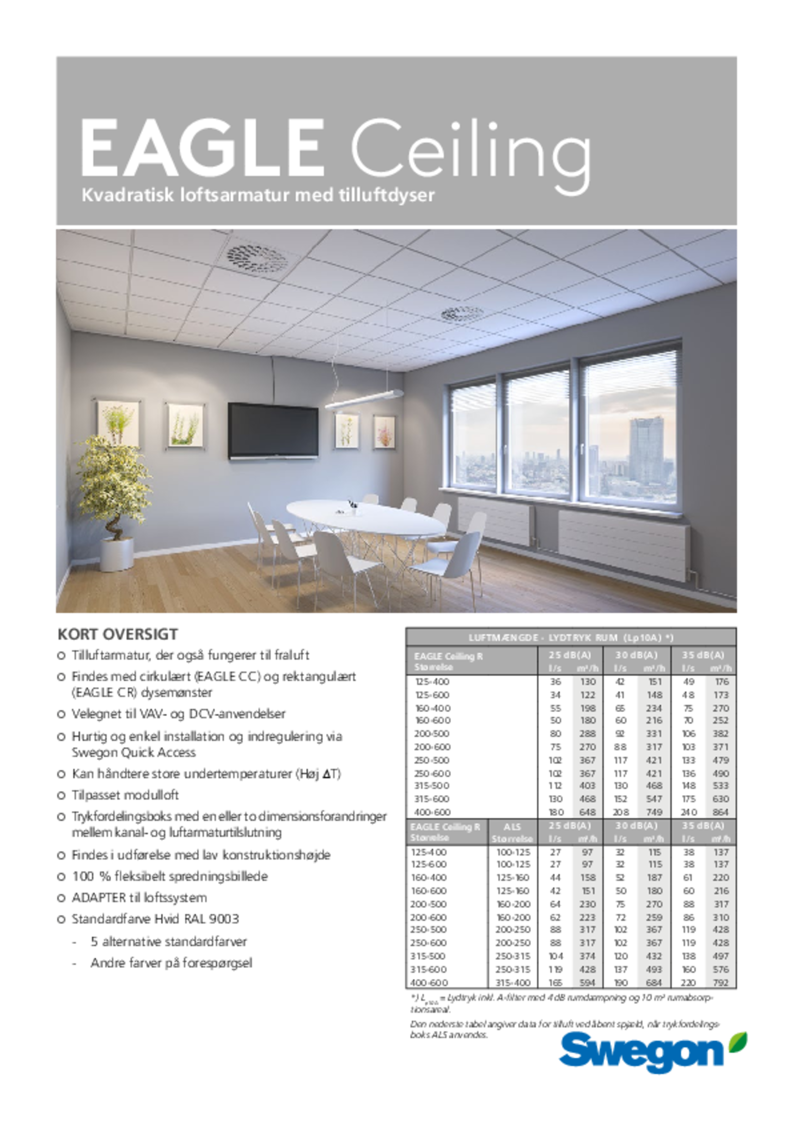 - Findes med cirkulært (EAGLE CC) og rektangulært (EAGLE CR) dysemønster
