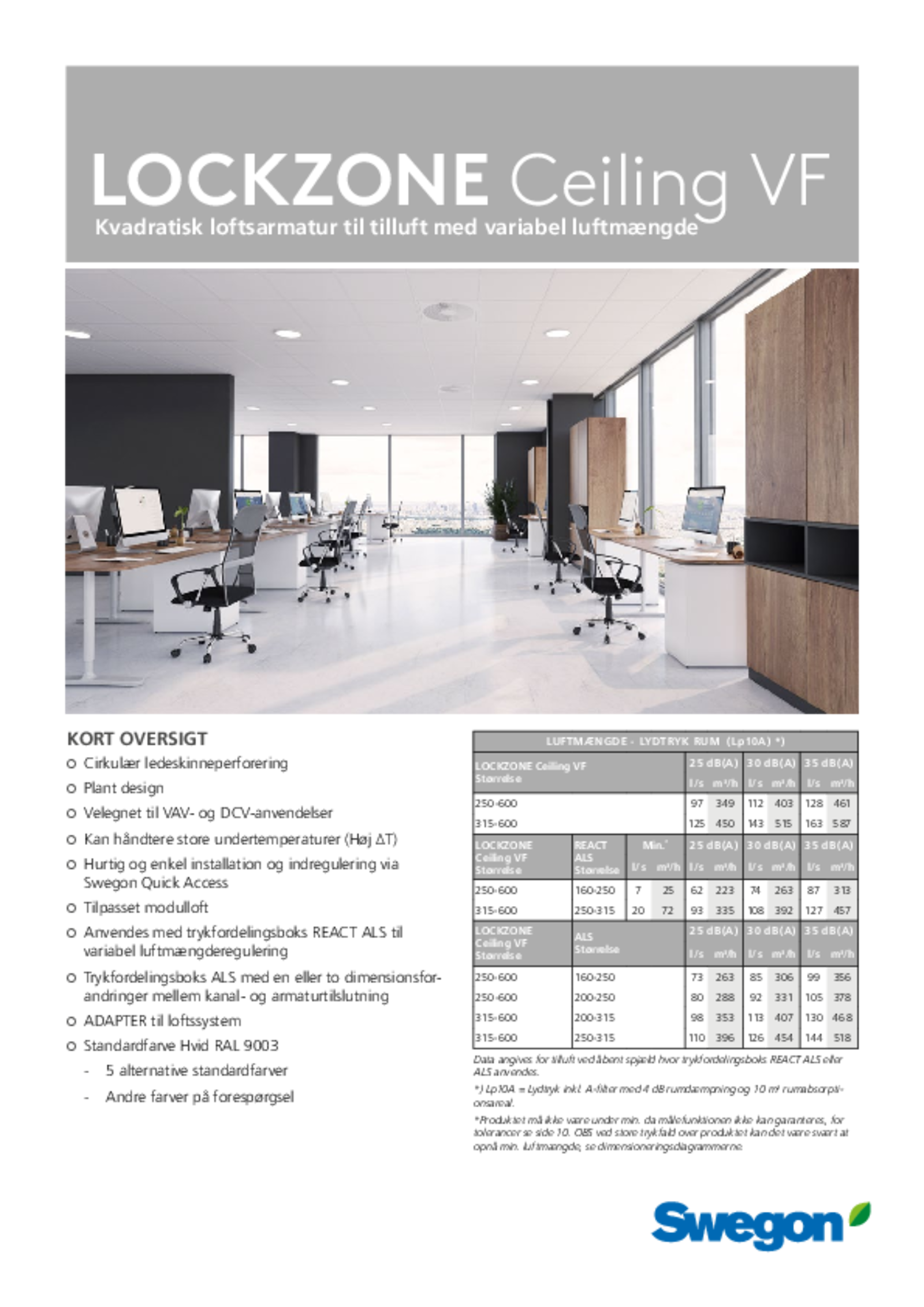 • Benyttes med trykfordelingsboks REACT ALS til variabel luftmængde