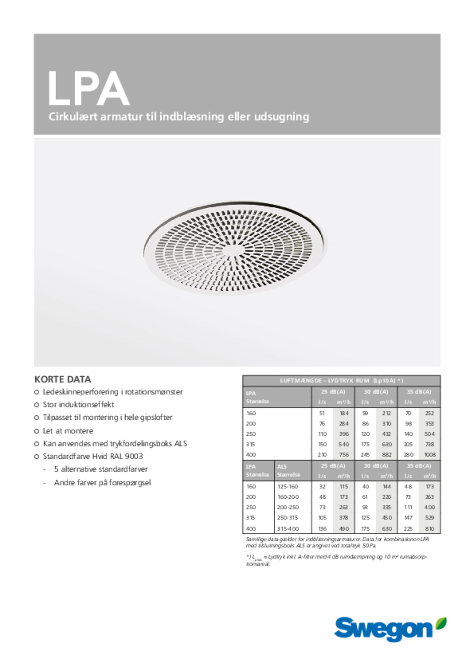 Cirkulært loftsarmatur til tilluft og fraluft