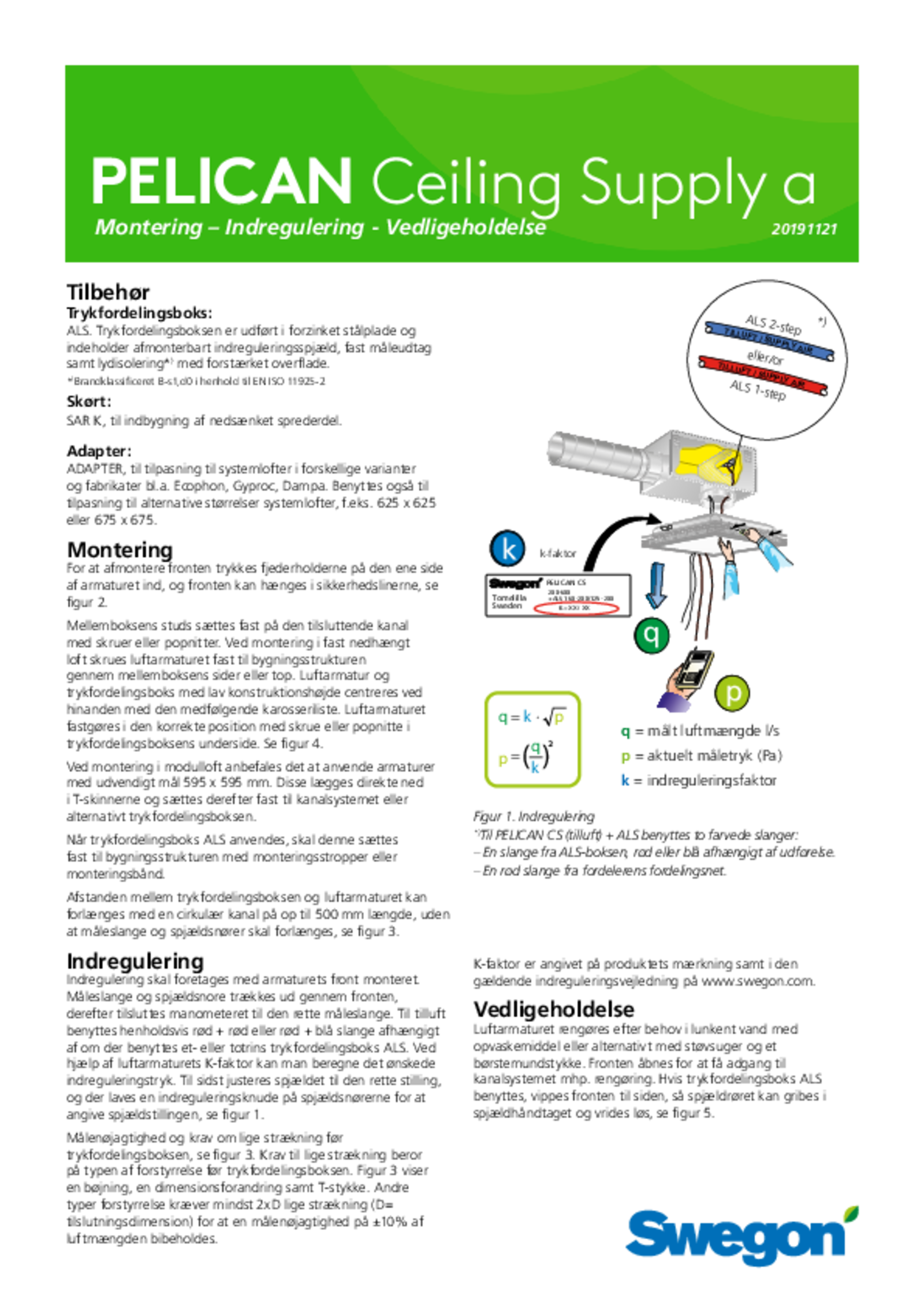 | Montering, indregulering, vedligeholdelse (pdf 2.44MB) | PELICAN Ceiling Supply a | DV-manual | |