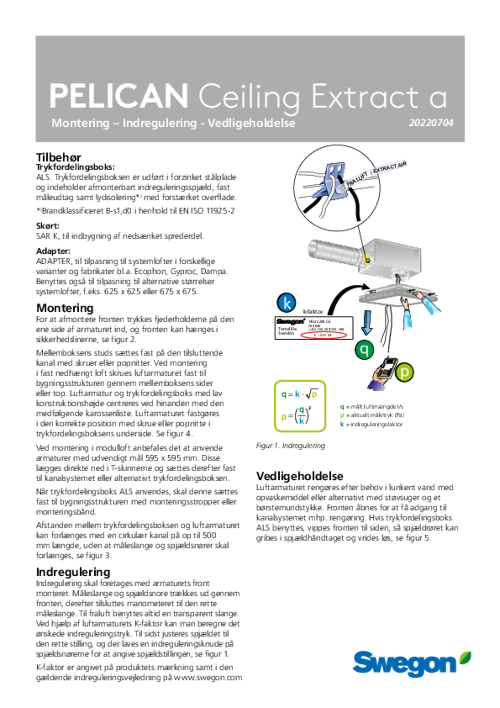 | Montering, indregulering, vedligeholdelse (pdf 1.89MB) | PELICAN Ceiling Extract a | DV-manual |