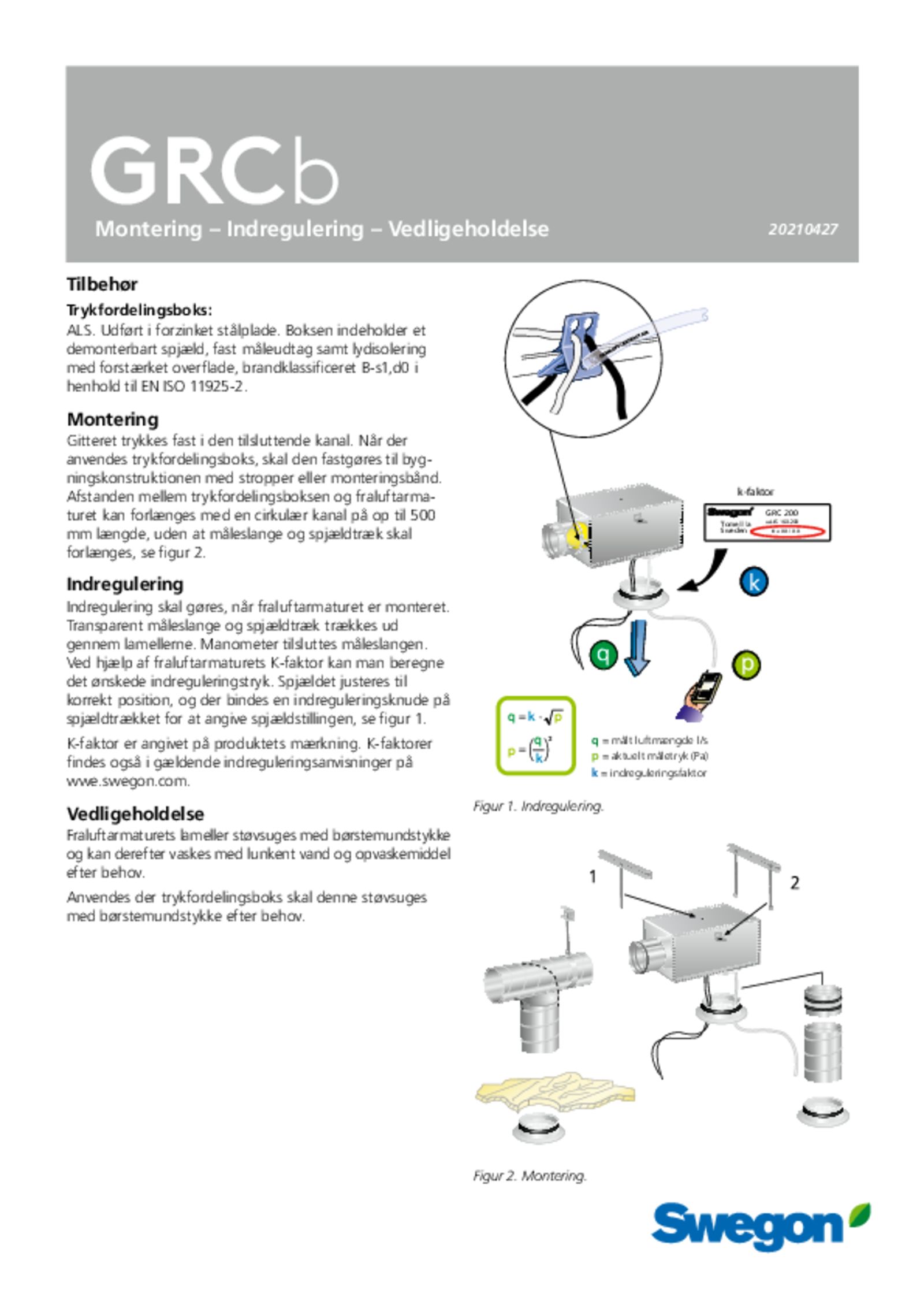 • Kan anvendes med trykfordelingsboks ALS