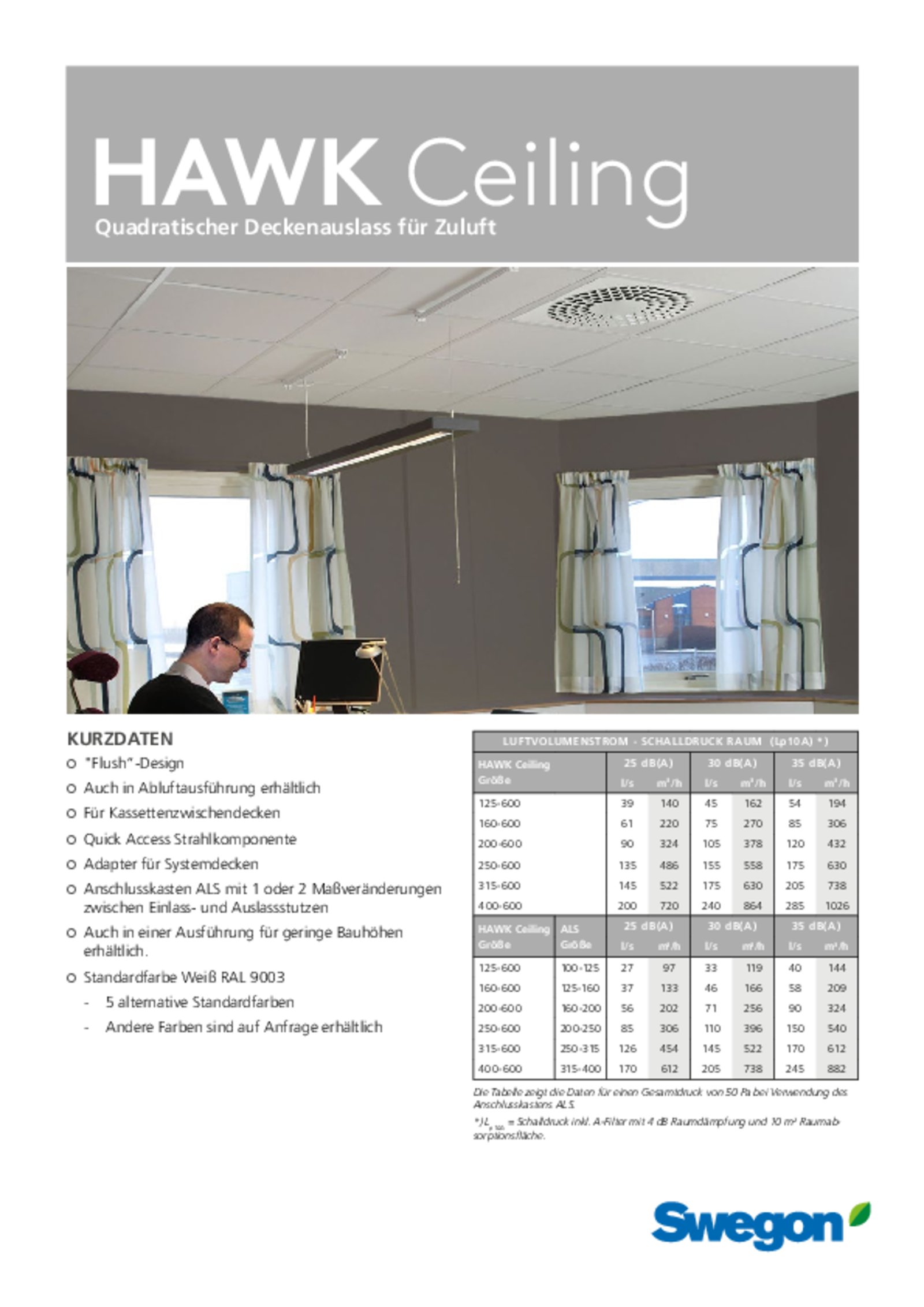 | Quadratischer Deckenauslass für Zuluft (pdf 2.05MB) | HAWK Ceiling a | Technischer Katalog | |