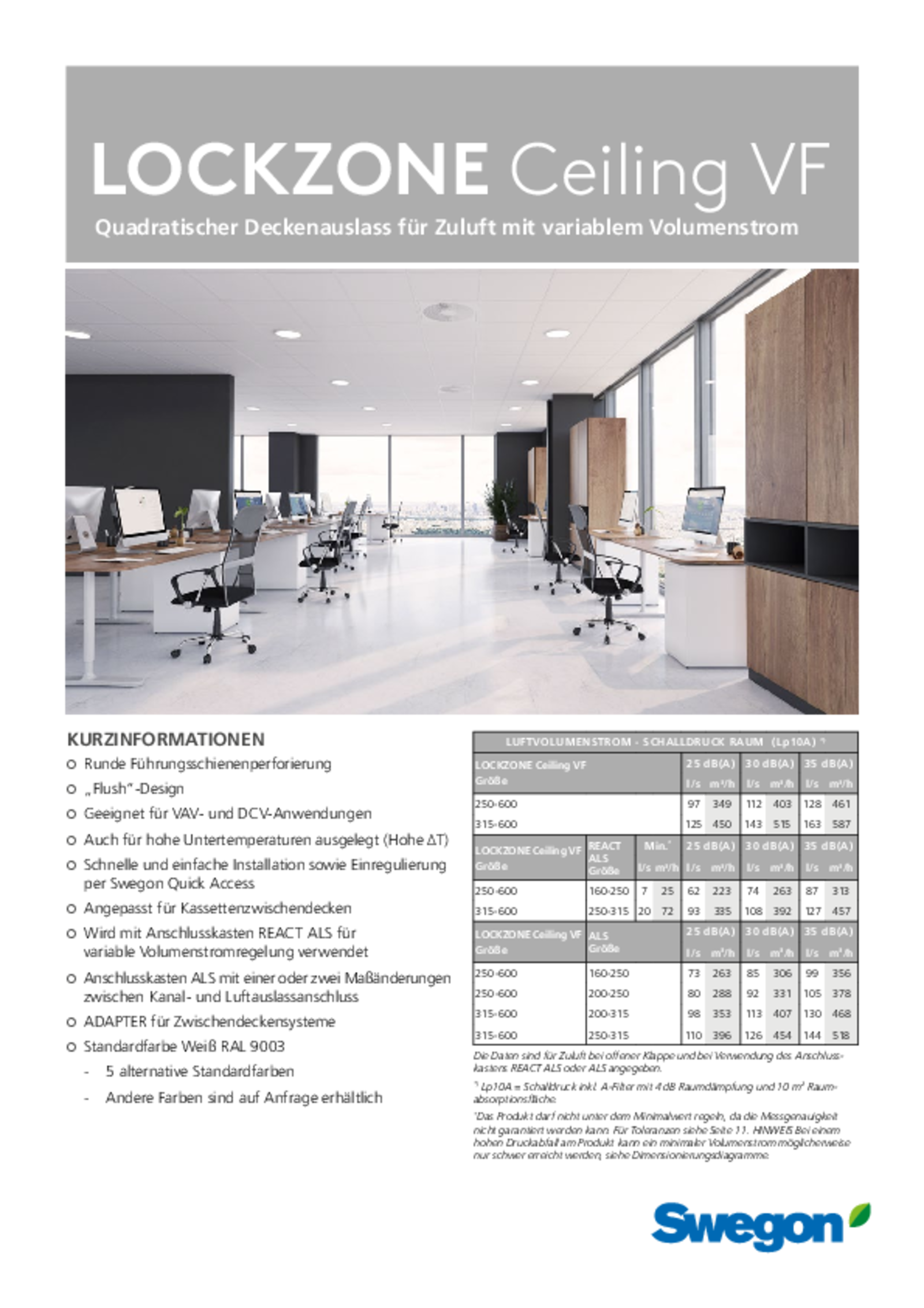 • Schnelle und einfache Installation sowie Einregulierung per Swegon Quick Access