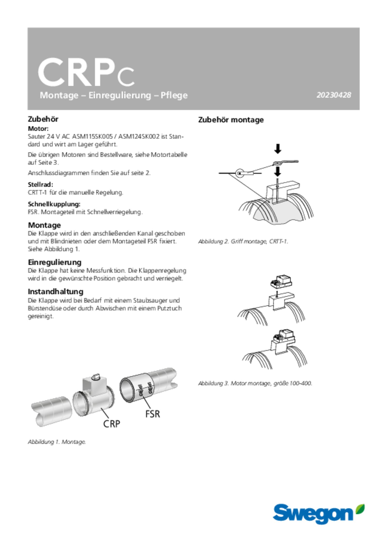 Dichtheitsklasse 0 gemäß SS-EN 1751. Druckklasse mit 1000 Pa als höchstem Druckunterschied über dem Klappenblatt in geschlossener Position. Dichtheitsklasse C am Gehäuse sowie Dichtheitsklasse 0 bei geschlossener Klappe.