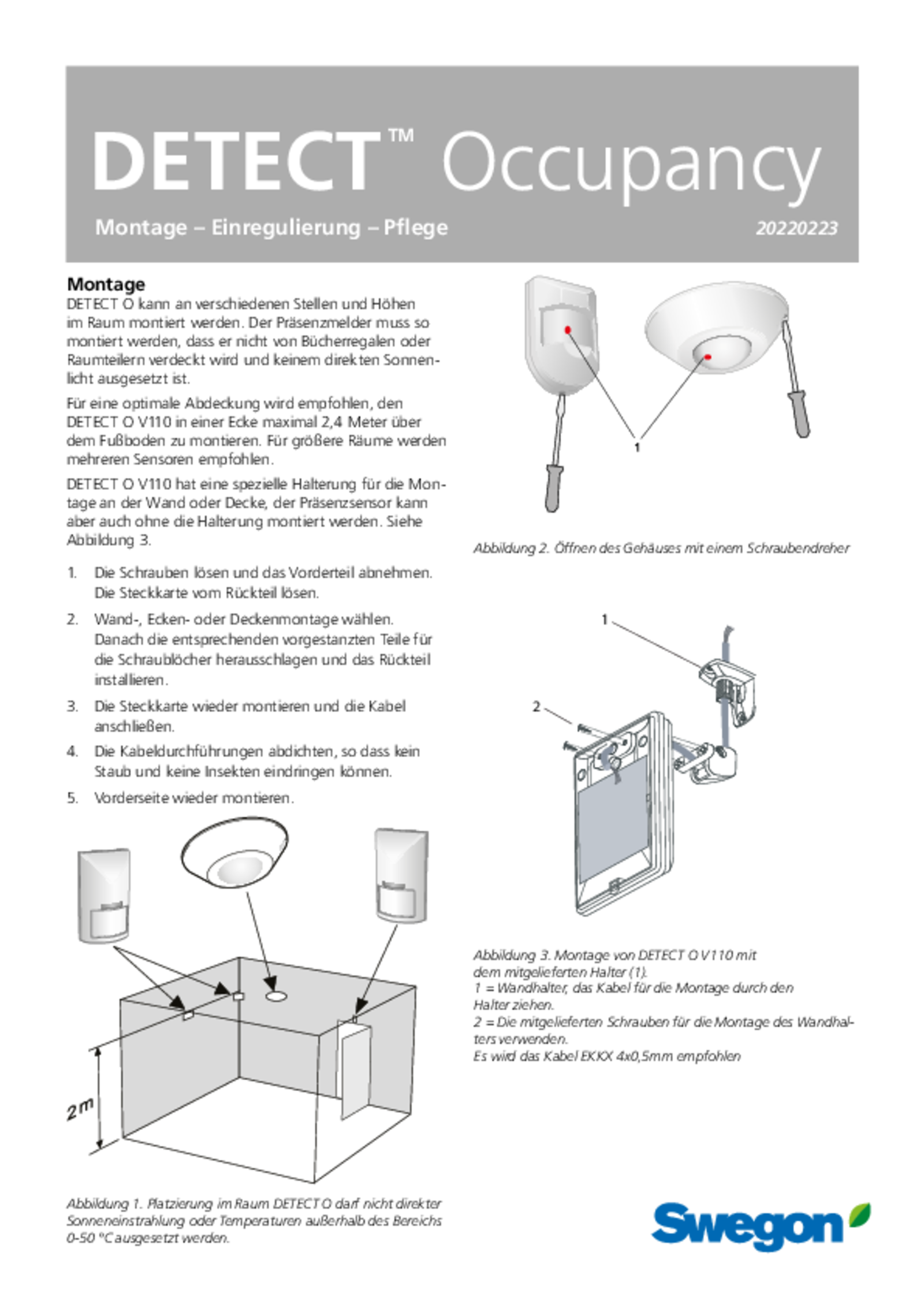 | Montage, Einregulierung, Wartung (pdf 546.82kB) | DETECT Occupancy | Installations- und Wartungshandbuch |