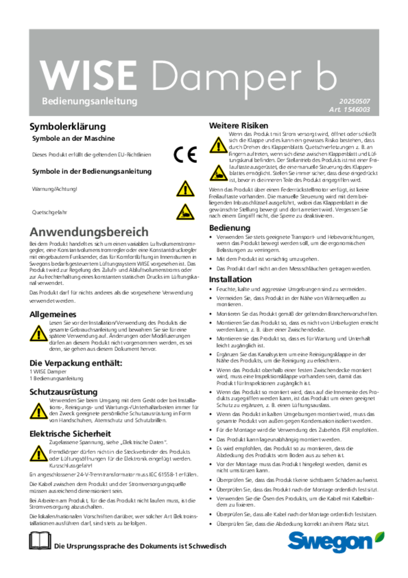 | CE-declaration (pdf 45.5kB) | WISE Damper b | Qualität | |