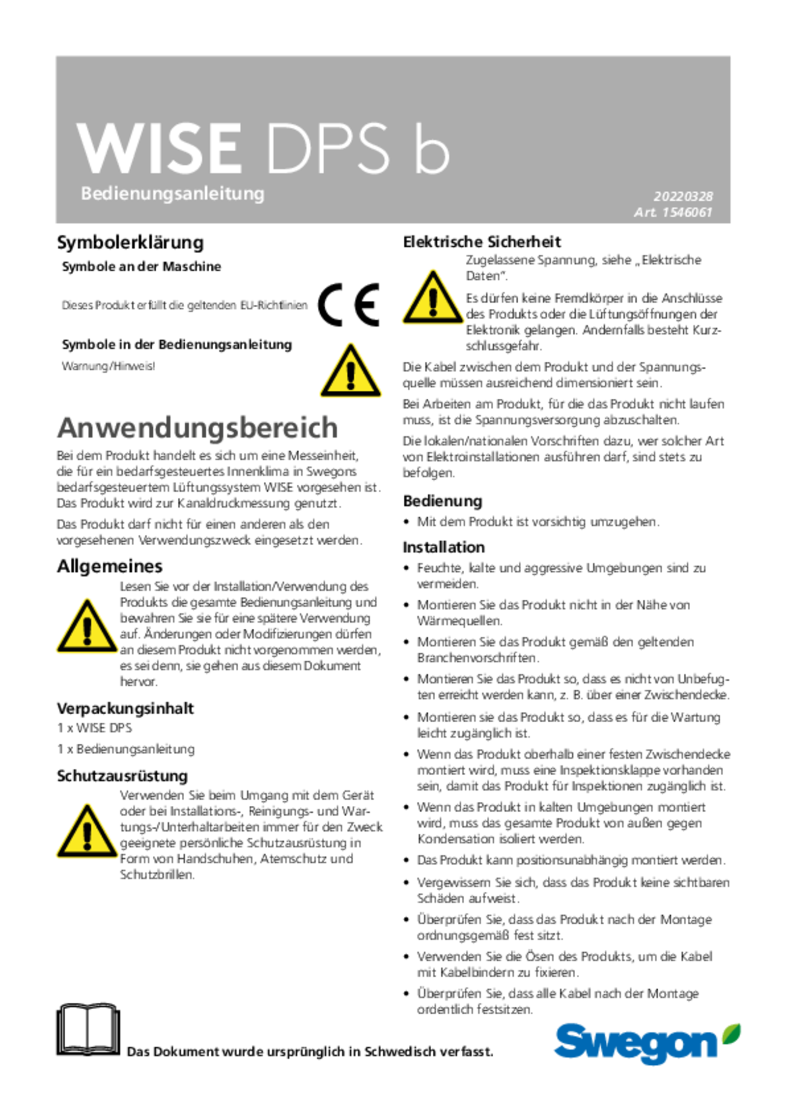 Bedienungsanleitung (pdf 1.24MB) WISE DPS b Installations- und Wartungshandbuch