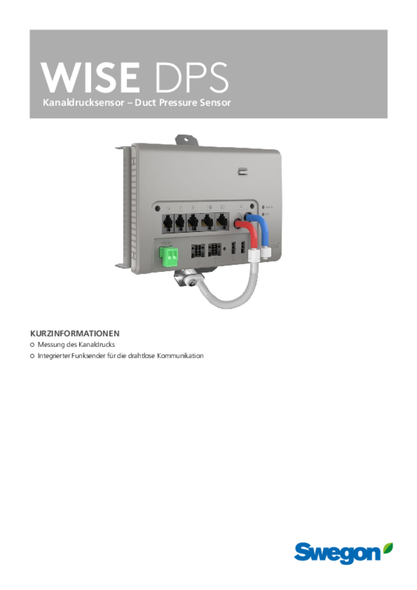 Kanaldrucksensor – Duct Pressure Sensor (pdf 599.11kB) WISE DPS b Technischer Katalog
