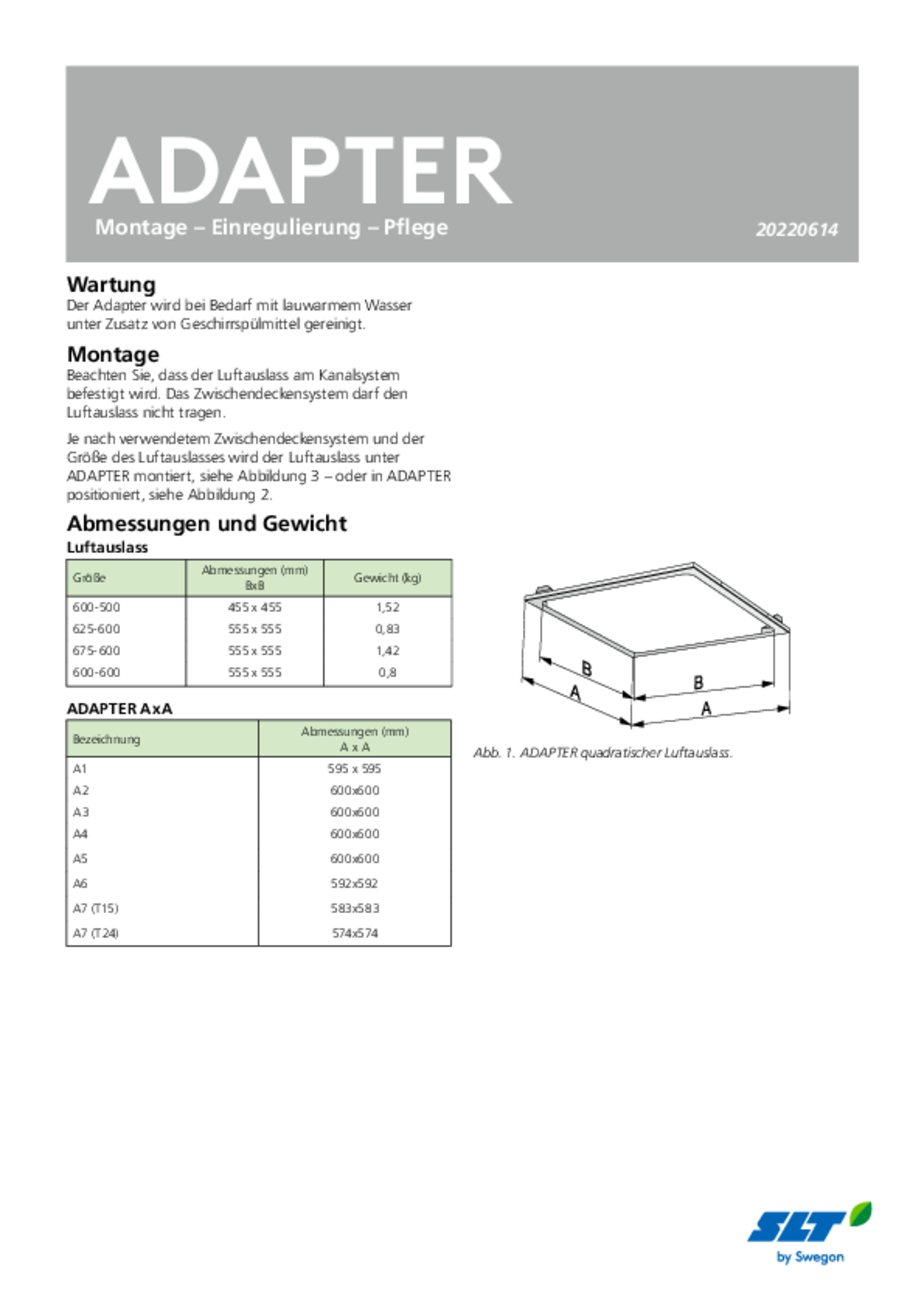• ADAPTER wird zusammen mit Luftauslässen aus dem Ceiling Collection Sortiment verwendet
