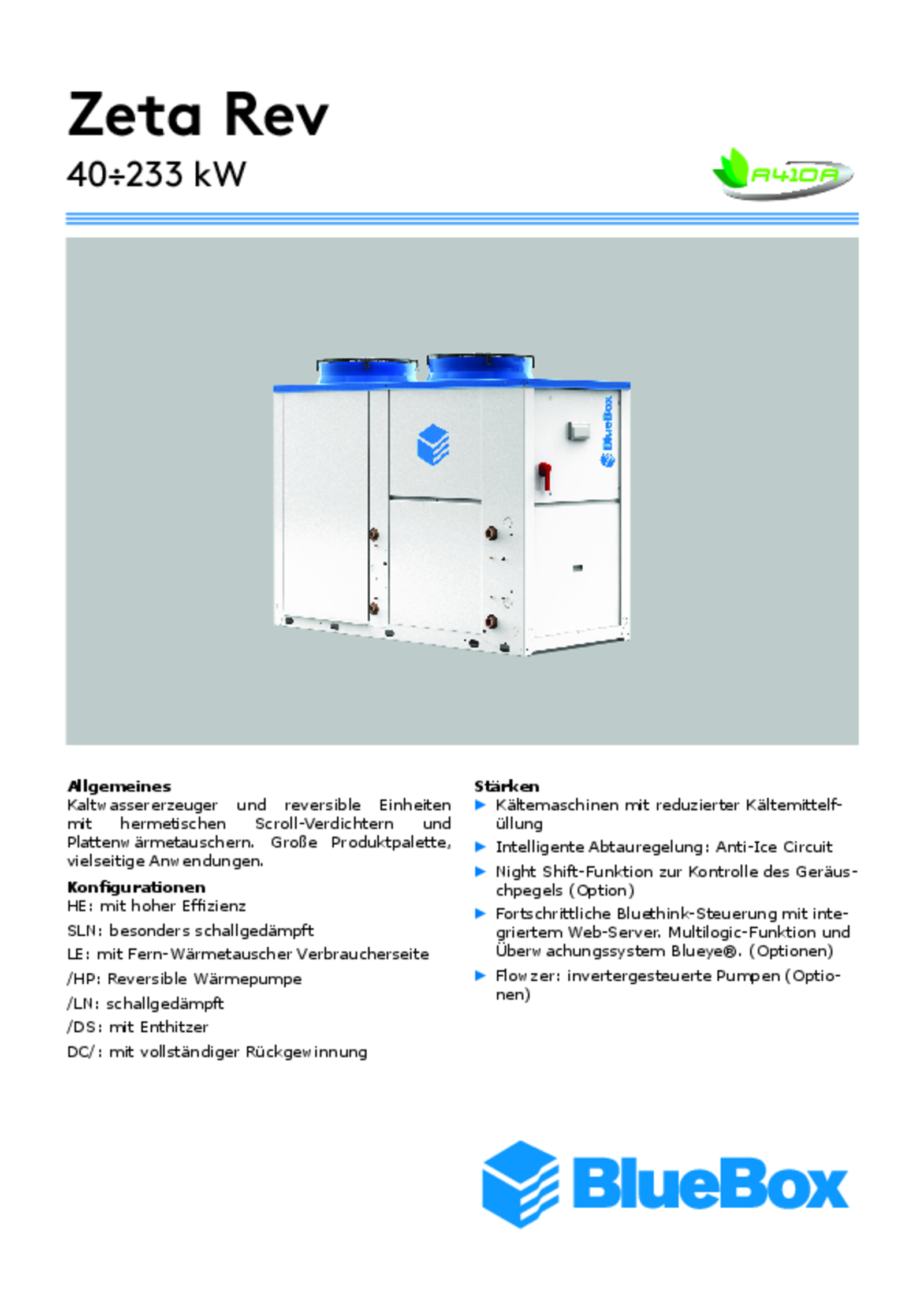 Kaltwassererzeuger und Wärmepumpen mit Kältemittel R410A 40 - 233 kW