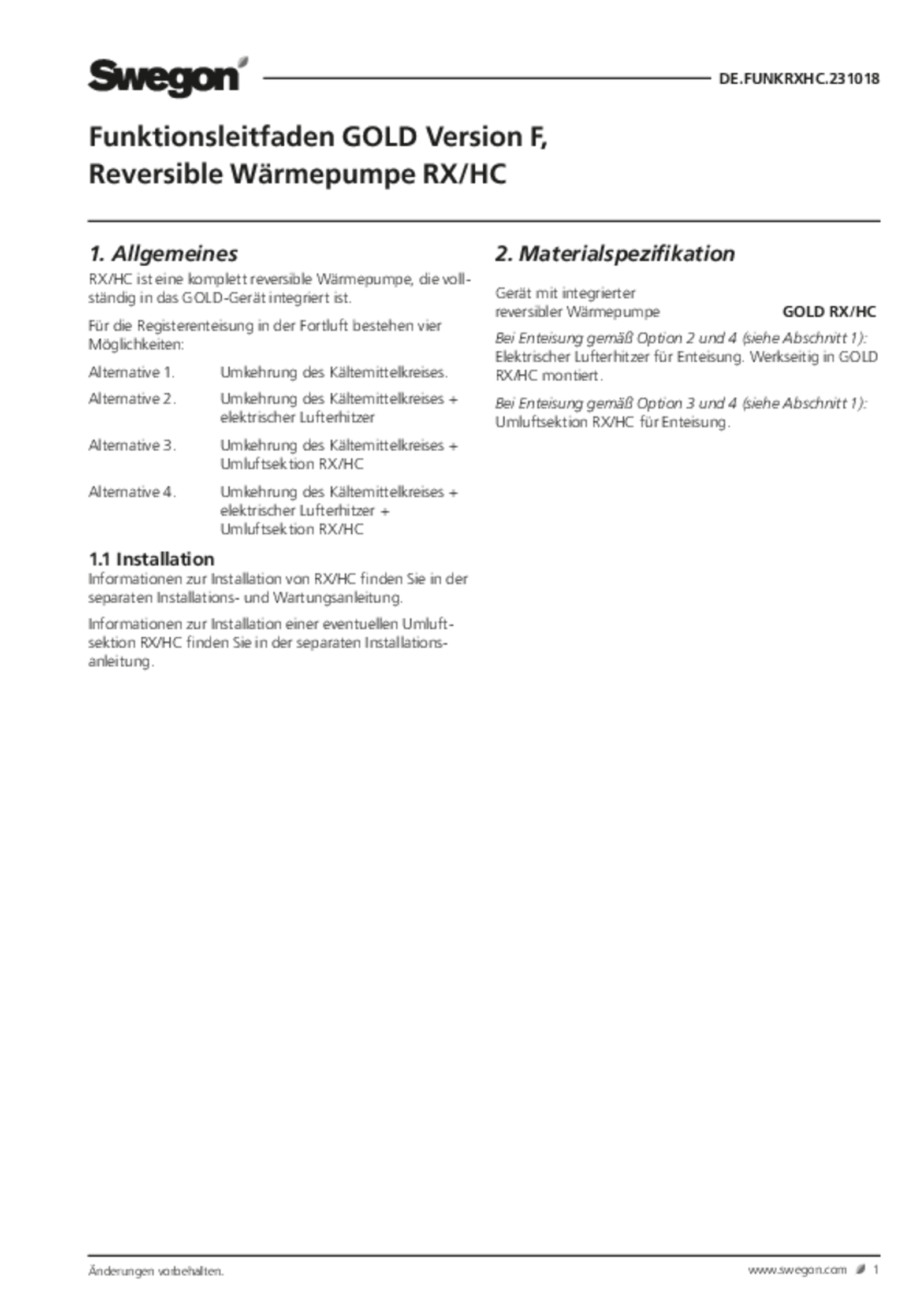 Kombi-Lüftungsgerät als Komplettlösung und reversible Wärmepumpe. Das Ergebnis ist Frischluft, Heizung und Kühlung in einem schlanken und energieeffizienten Design. Die Planung wird dadurch vereinfacht, dass wir die Integration zwischen der Wärmepumpe und dem Lüftungsgerät mechanisch und steuerungstechnisch bereits für Sie erledigt haben. Die Installation wird weiter vereinfacht, wenn Sie sich dafür entscheiden, das Gerät werksseitig befüllen, prüfen und betriebsbereit machen zu lassen. Das Gerät ist auch als Ausführung nur für Kühlung verfügbar und heißt dann GOLD RX/C.