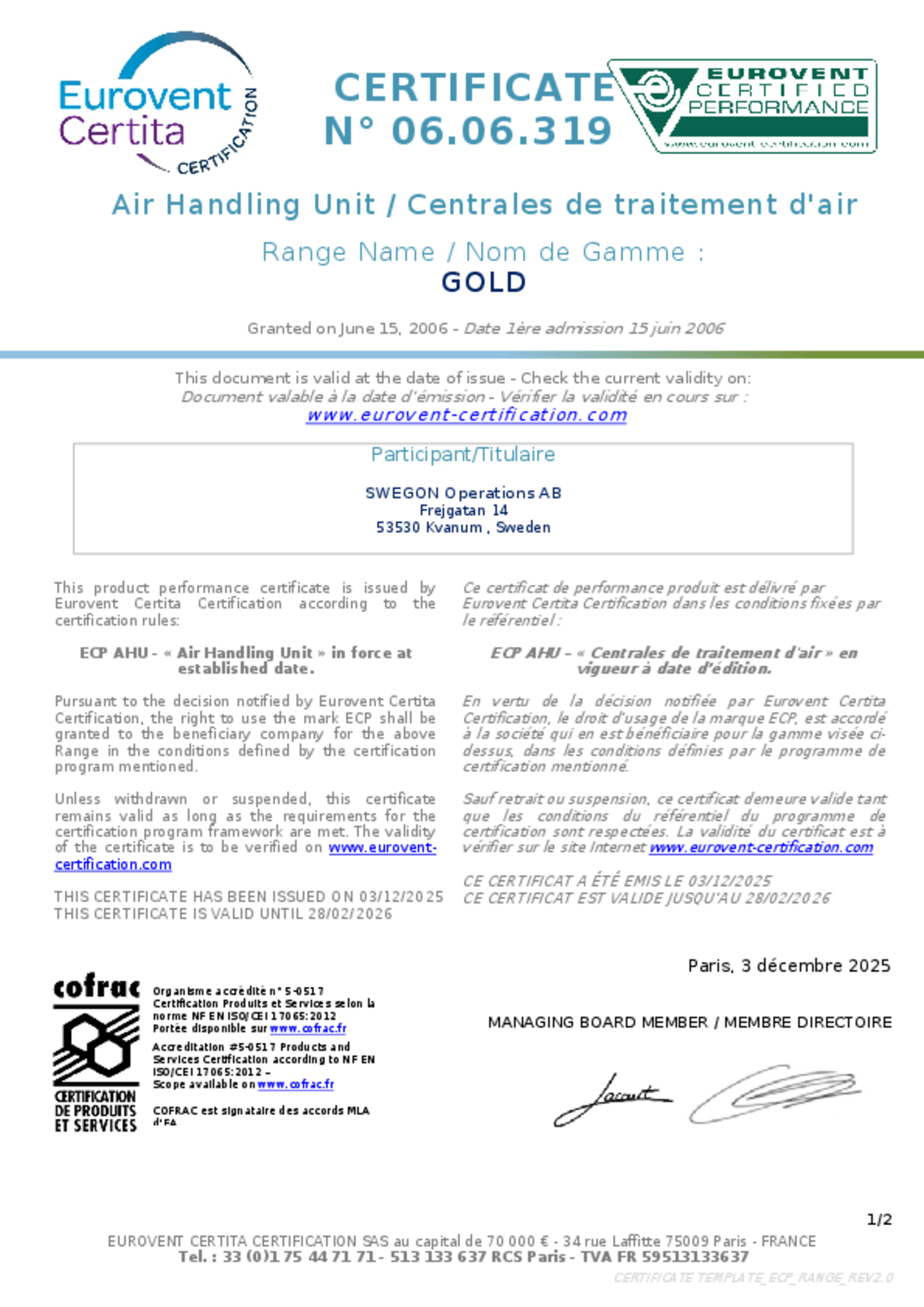 • Certificación Eurovent
