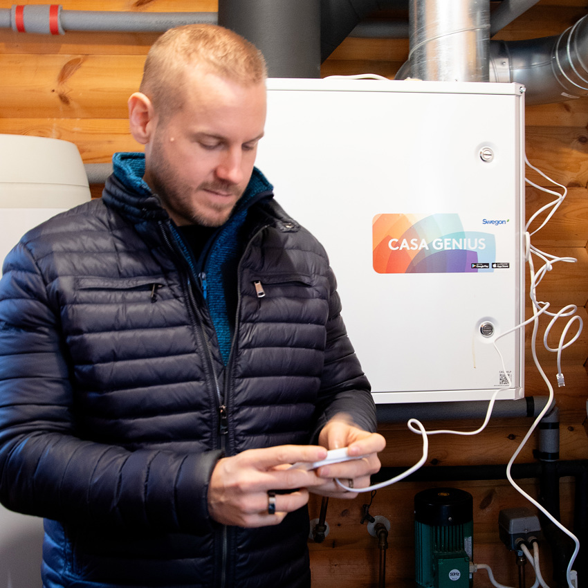 Genius -ilmanvaihtokoneessa on itsessään paljon diagnostiikkaa, se seuraa jatkuvasti, että kaikki on kunnossa. Swegon on kehittänyt sähköisen käyttöohjeen. Siihen pääsee kätevästi sovelluksesta tai Swegonin sivuilta (casaemanual.com).
