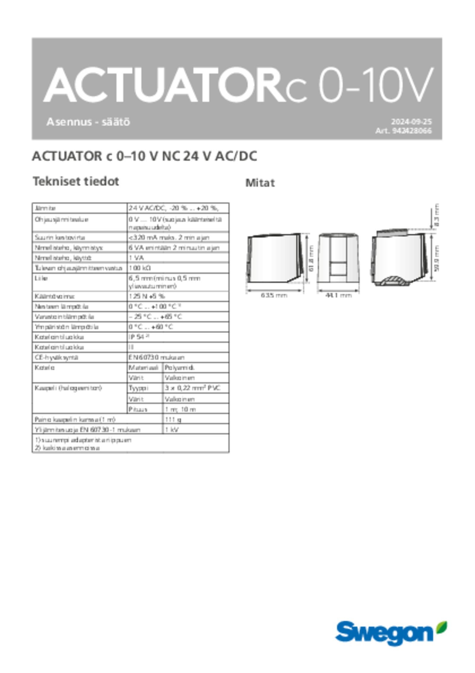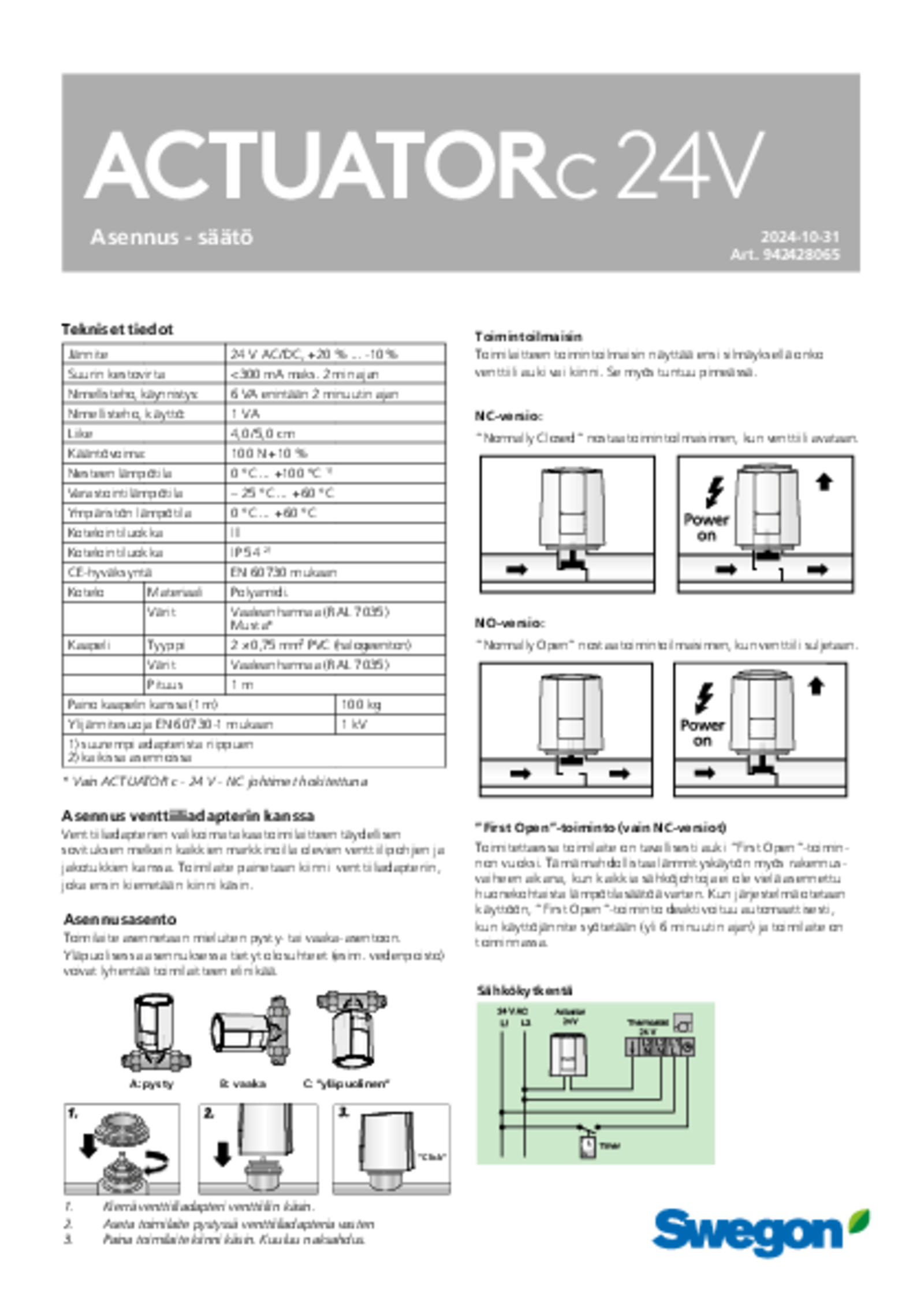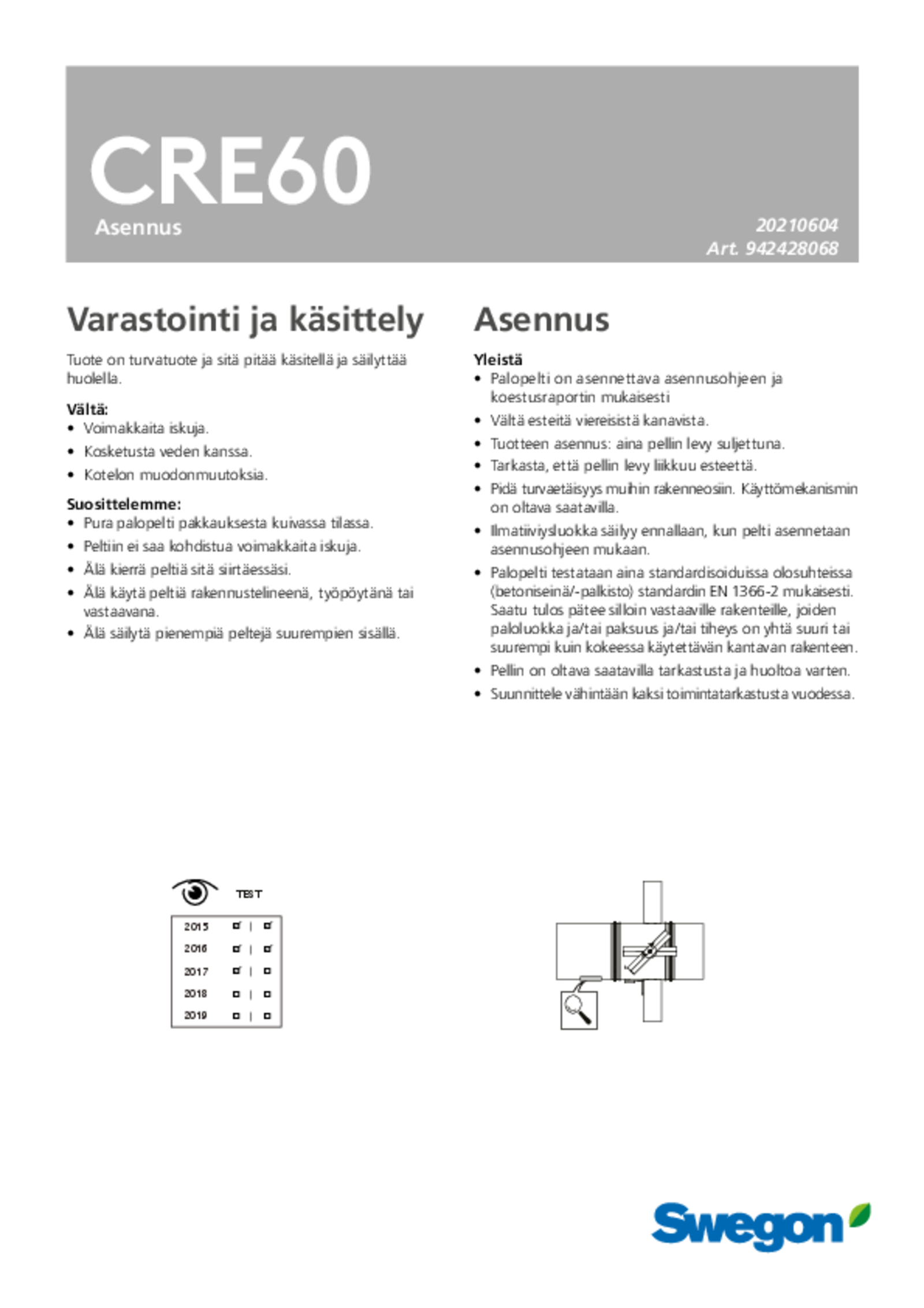 Asennus-, käyttö-, huolto- ja turvallisuusohjeet
