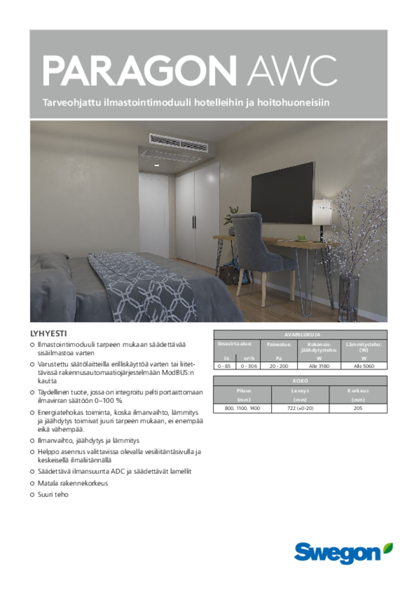 Tarveohjattu ilmastointimoduuli hotelleihin ja hoitohuoneisiin