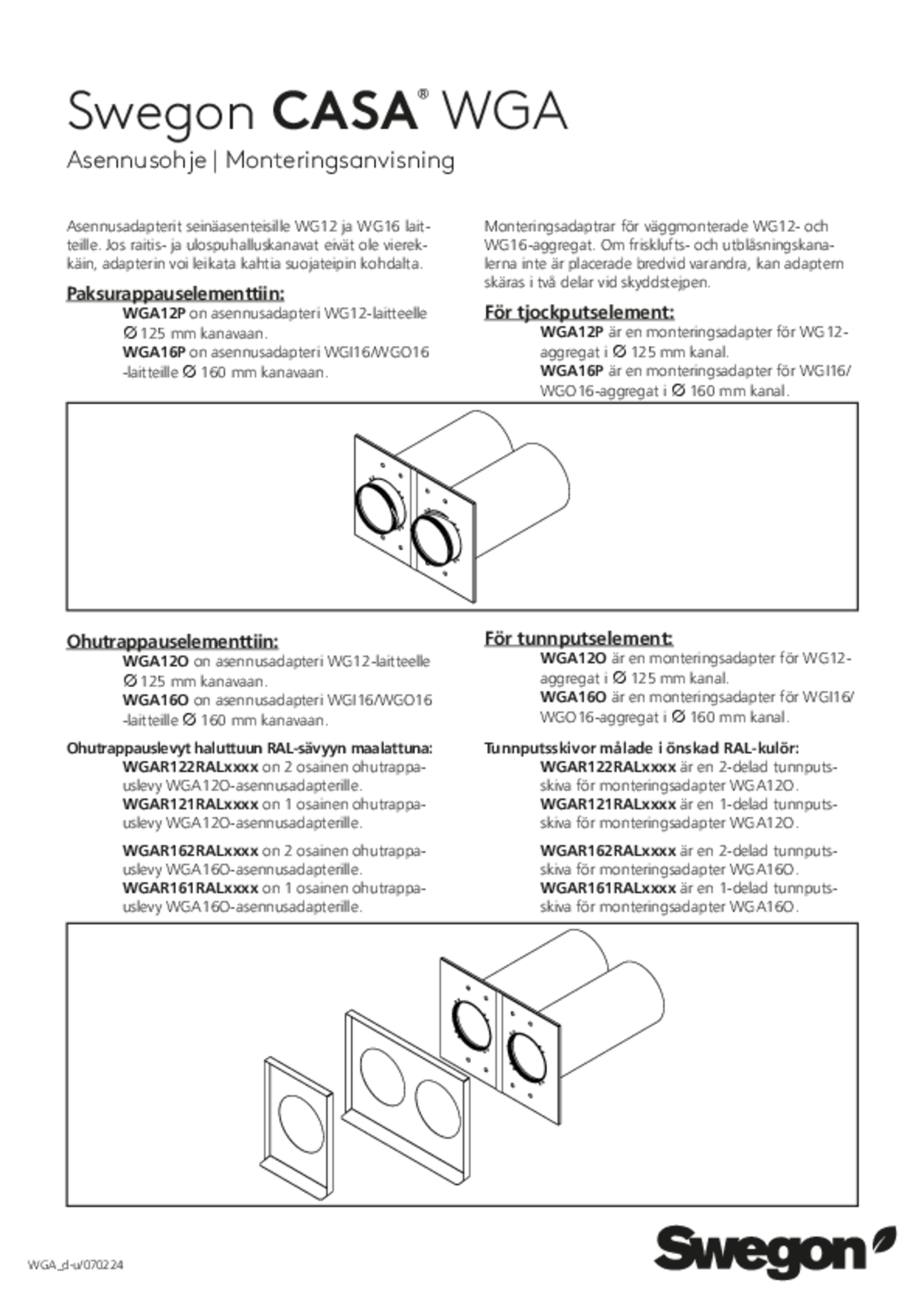 | Asennusohje (pdf 2.97MB) | WGA asennusadapterit | Asennus- ja huoltomanuaali |