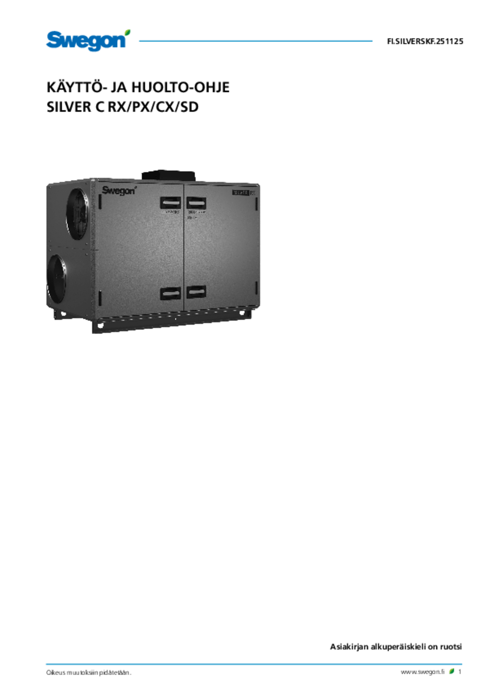 | Käyttö- ja huolto-ohje (pdf 6.96MB) | SILVER C | Asennus- ja huoltomanuaali | |