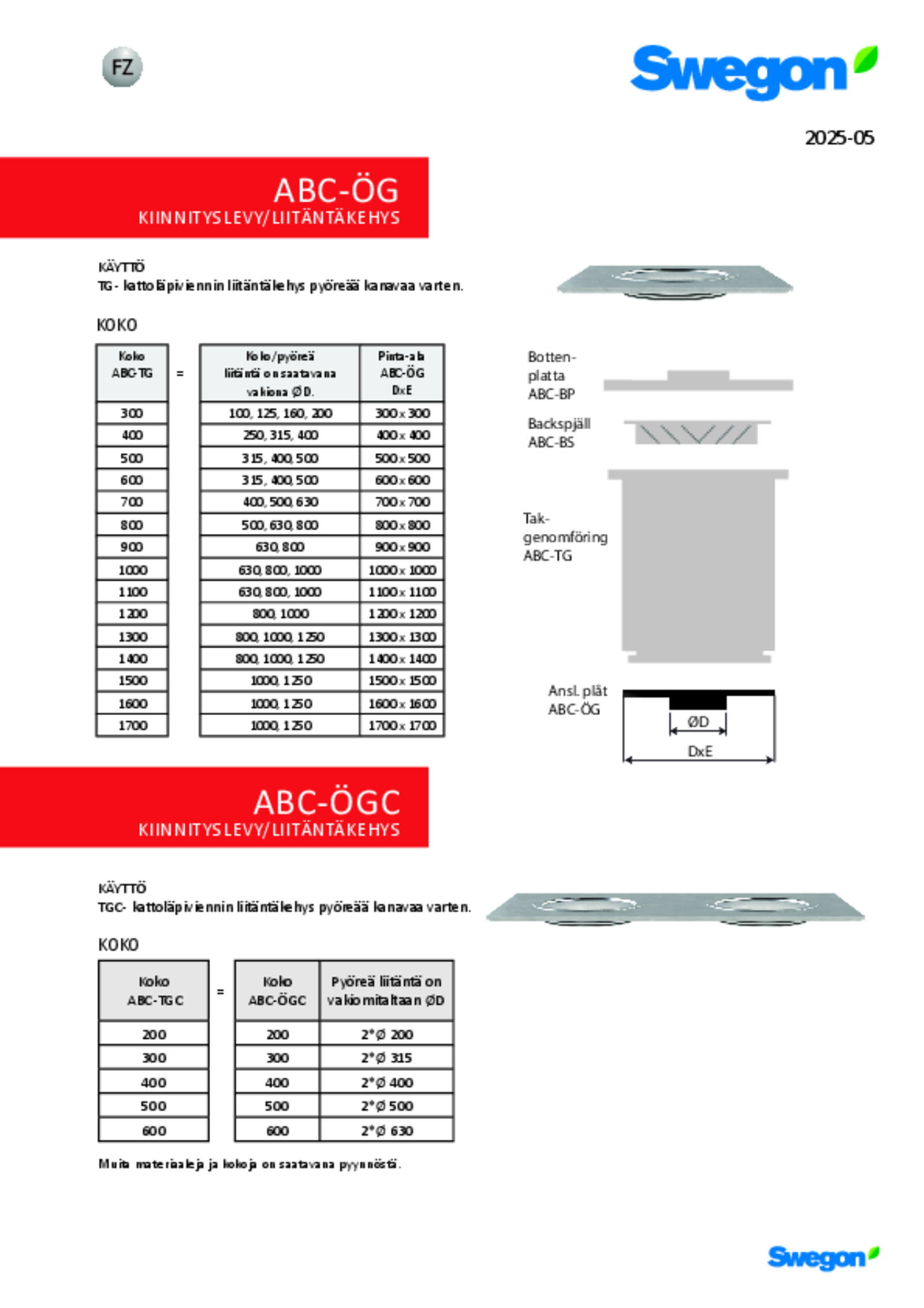 | Kiinnityslevy/liitäntäkehys (pdf 186.03kB) | ABC-ÖGC | Tekninen luettelo |