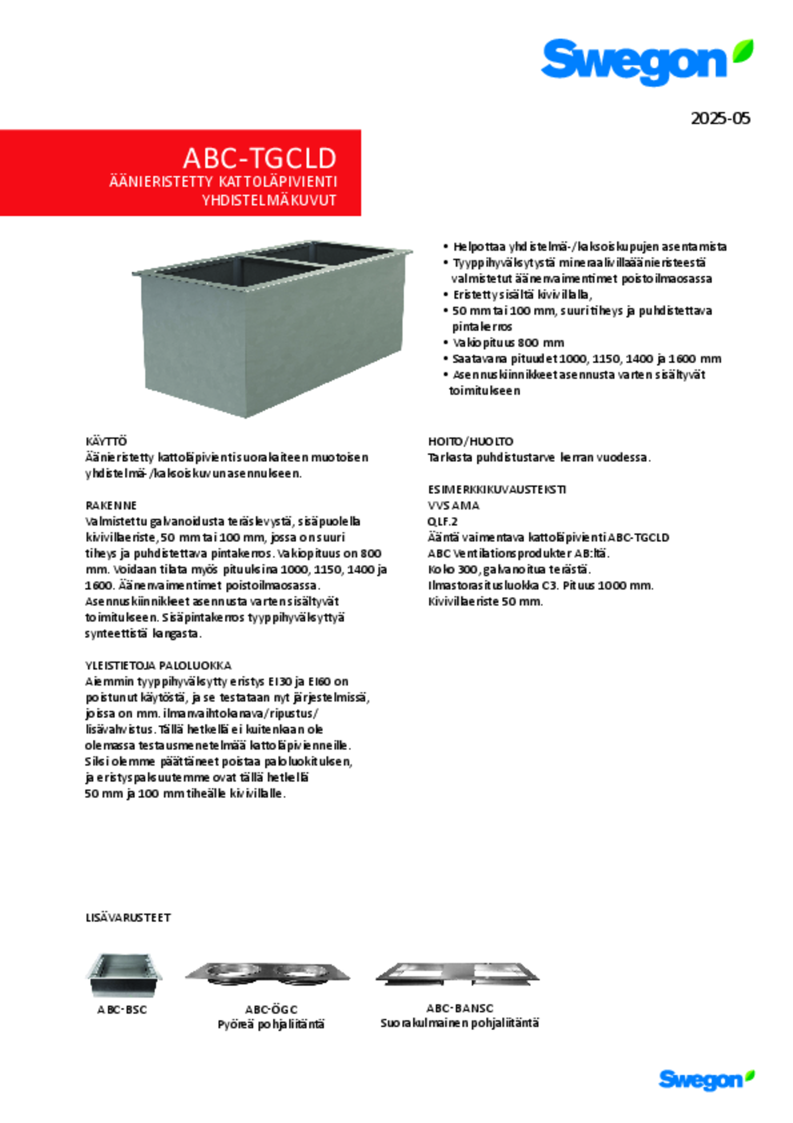 - Tyyppihyväksytystä mineraalivillaäänieristeestä valmistetut äänenvaimentimet poistoilmaosassa