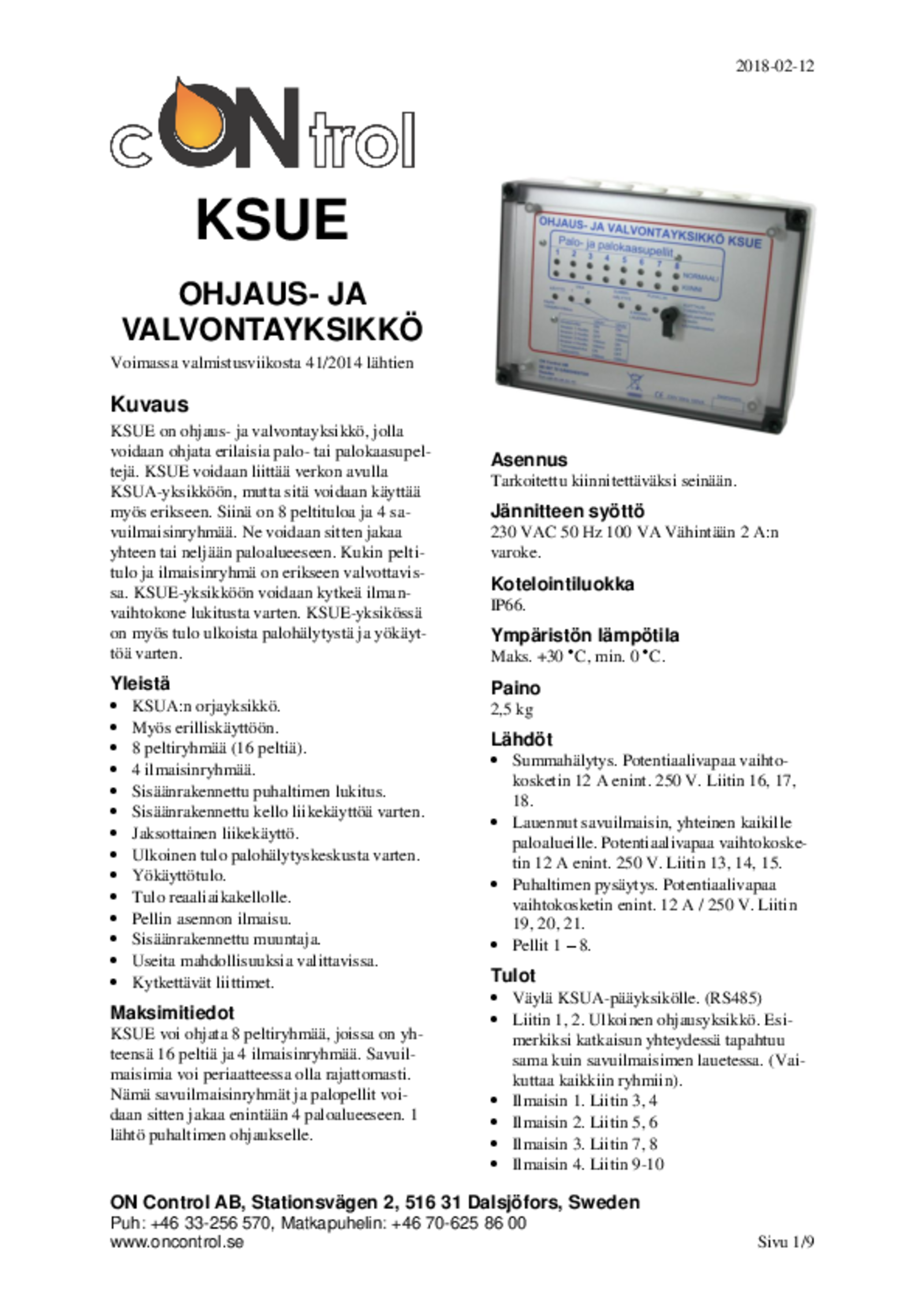 - Tulo keskitettyä palohälytystä ja toimintotestiä/yösulkua varten