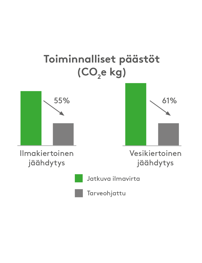 Kiinteistöjen osuus kaikesta energiankulutuksesta on huomattava, ja lämmitys, jäähdytys ja ilmanvaihto ovat suurimpia energiankuluttajia. Tarveohjattu ilmanvaihto on avainasemassa energiankulutuksen vähentämisessä. Investoimalla tarveohjattuun sisäilmastoon voit saavuttaa merkittäviä energiansäästöjä. WISEn avulla voit seurata, miten rakennus toimii käytön aikana, jopa etänä, ja lisäksi voit säästää huomattavasti energiaa:​