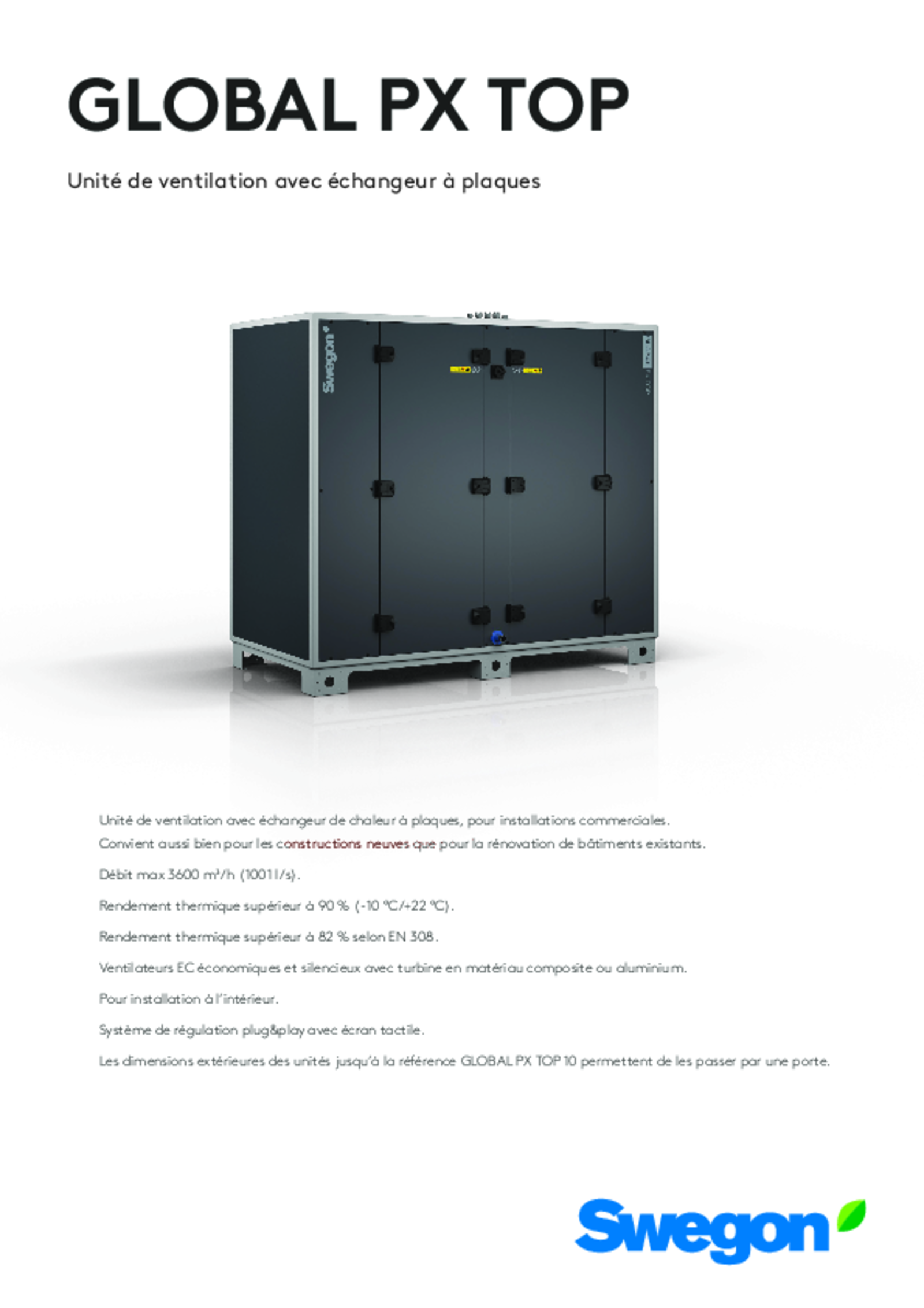 - Débit d’air max. 3.600 m³/h (Ecodesign)