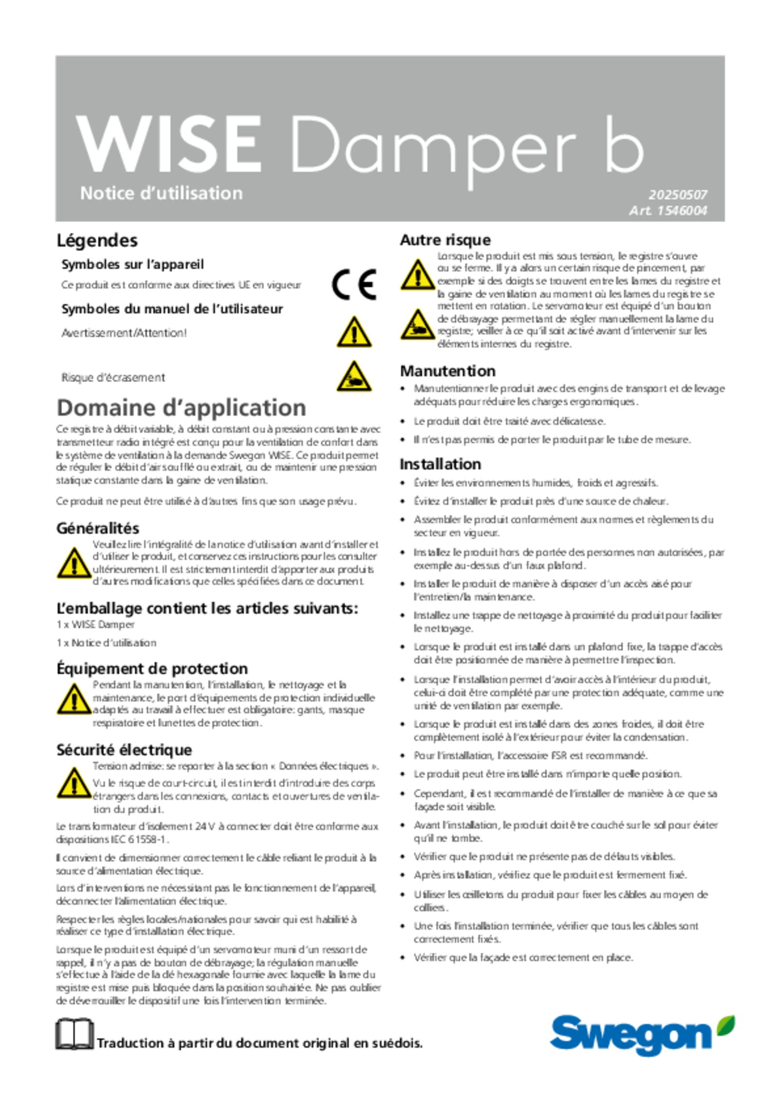 | Notice d’utilisation (pdf 3.7MB) | WISE Damper b | Instructions | |