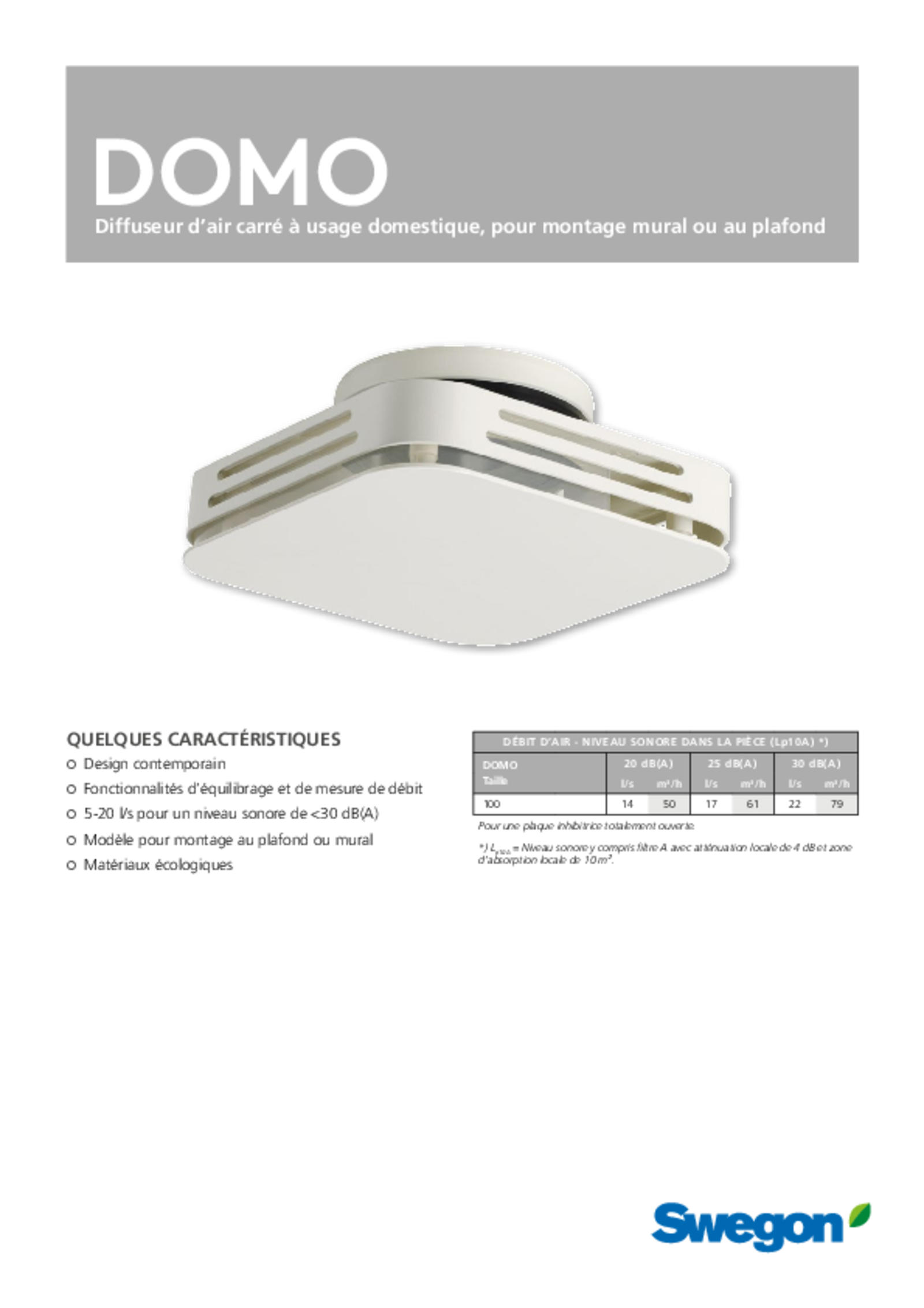 • 5-20 l/s pour un niveau sonore de <30 dB(A)
