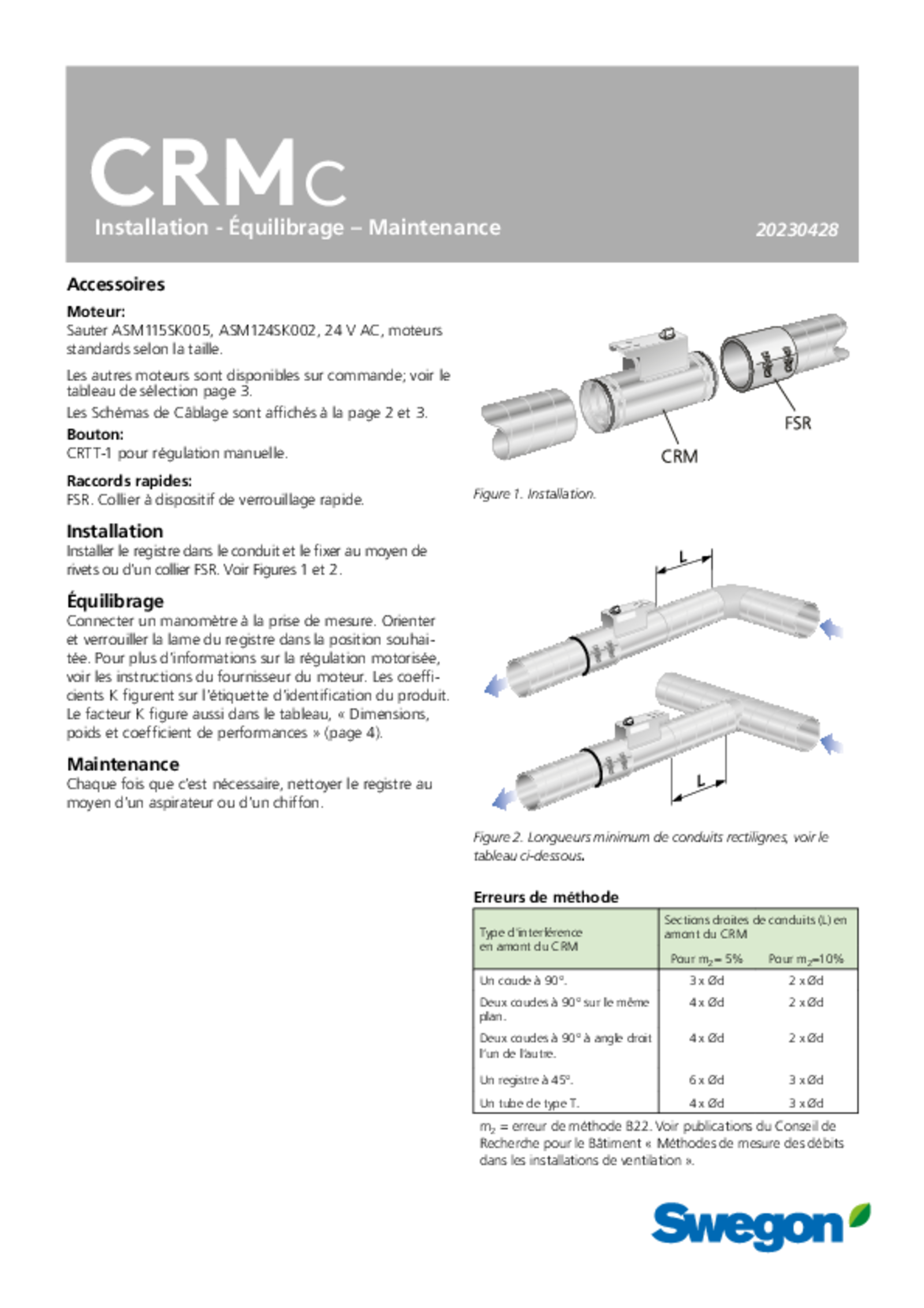 Registre circulaire d’équilibrage et de mesure du débit. Le régulateur CRM est composé d'une section de conduit avec registre et dispositif de mesure. Les connexions sont équipées de joints en caoutchouc.