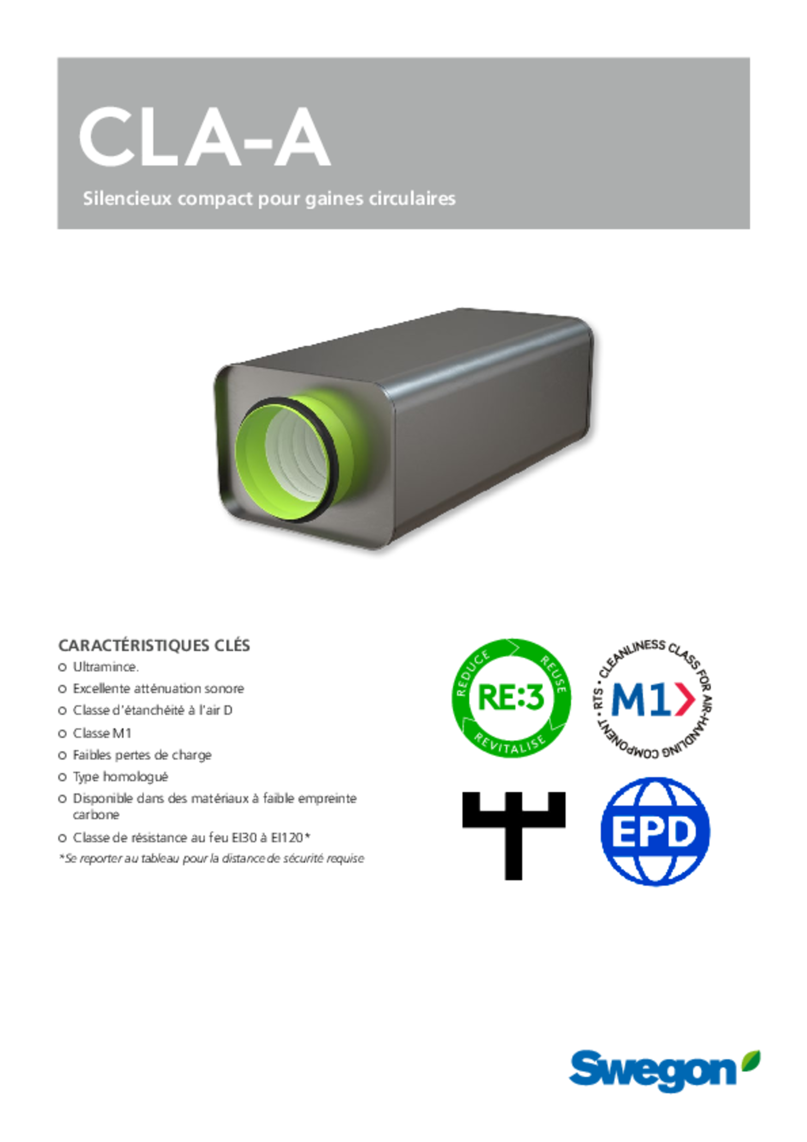 Le CLA fait partie du concept RE:3 de Swegon, basé sur les principes clés de la circularité, et qui se compose de RE:duce, RE:use et RE:vitalise. Le CLA est fabriqué en tôle durable appelée RRP (recycled and renewably produced), c’est-à-dire recyclée et produite de manière renouvelable. La tôle a une teneur en acier recyclé d’au moins 75 %. De plus, le procédé de fabrication utilise des foyers à arc électrique alimentés par de l’électricité 100% renouvelable.