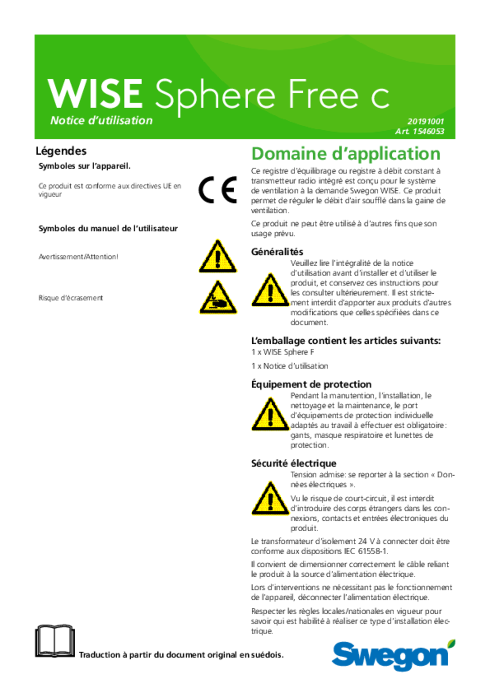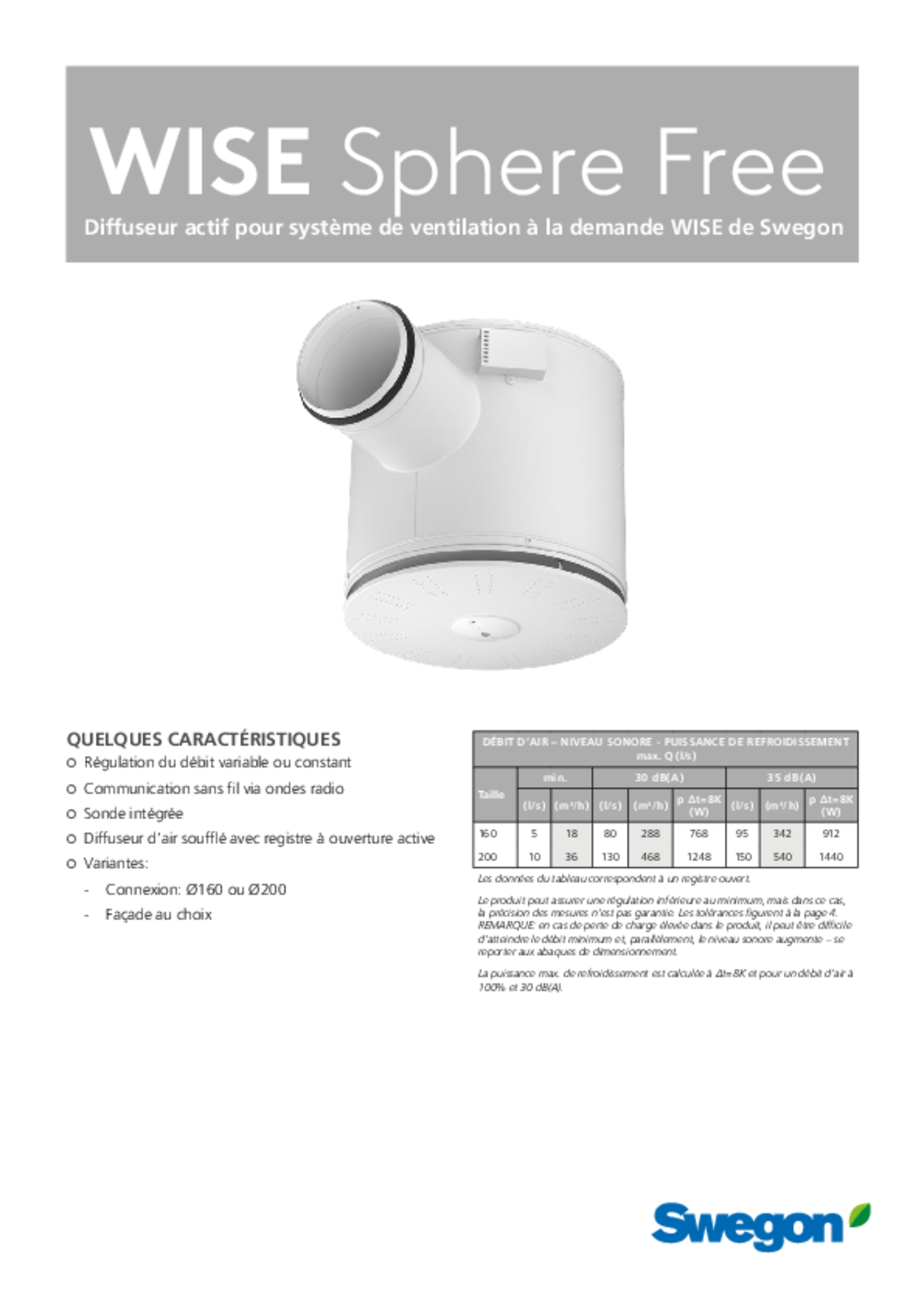 Diffuseur pour système de ventilation à la demande WISE de Swegon