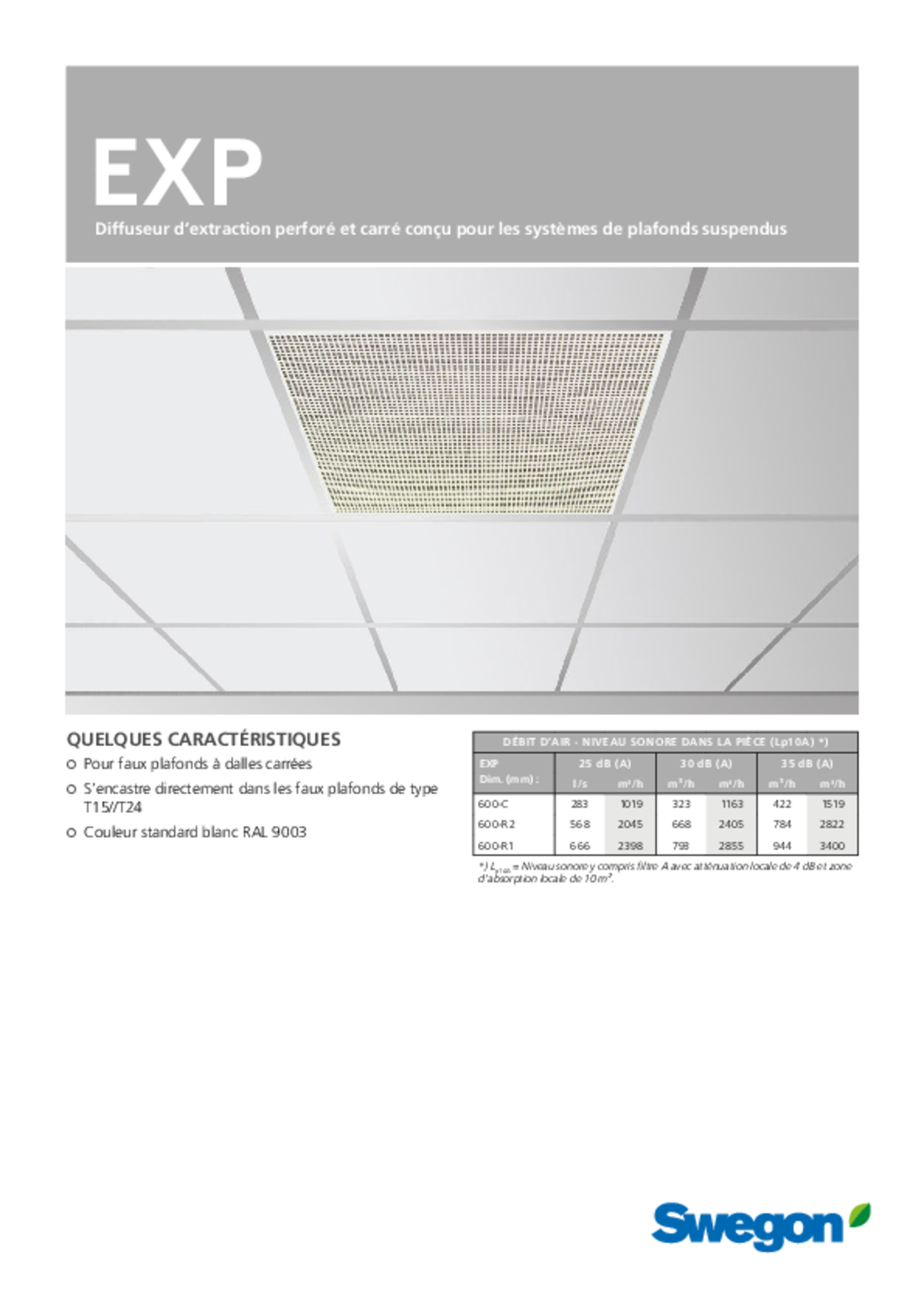 | Diffuseur d’extraction perforé et carré conçu pour les systèmes de plafonds suspendus (pdf 544.71kB) | EXPa | Brochure technique |