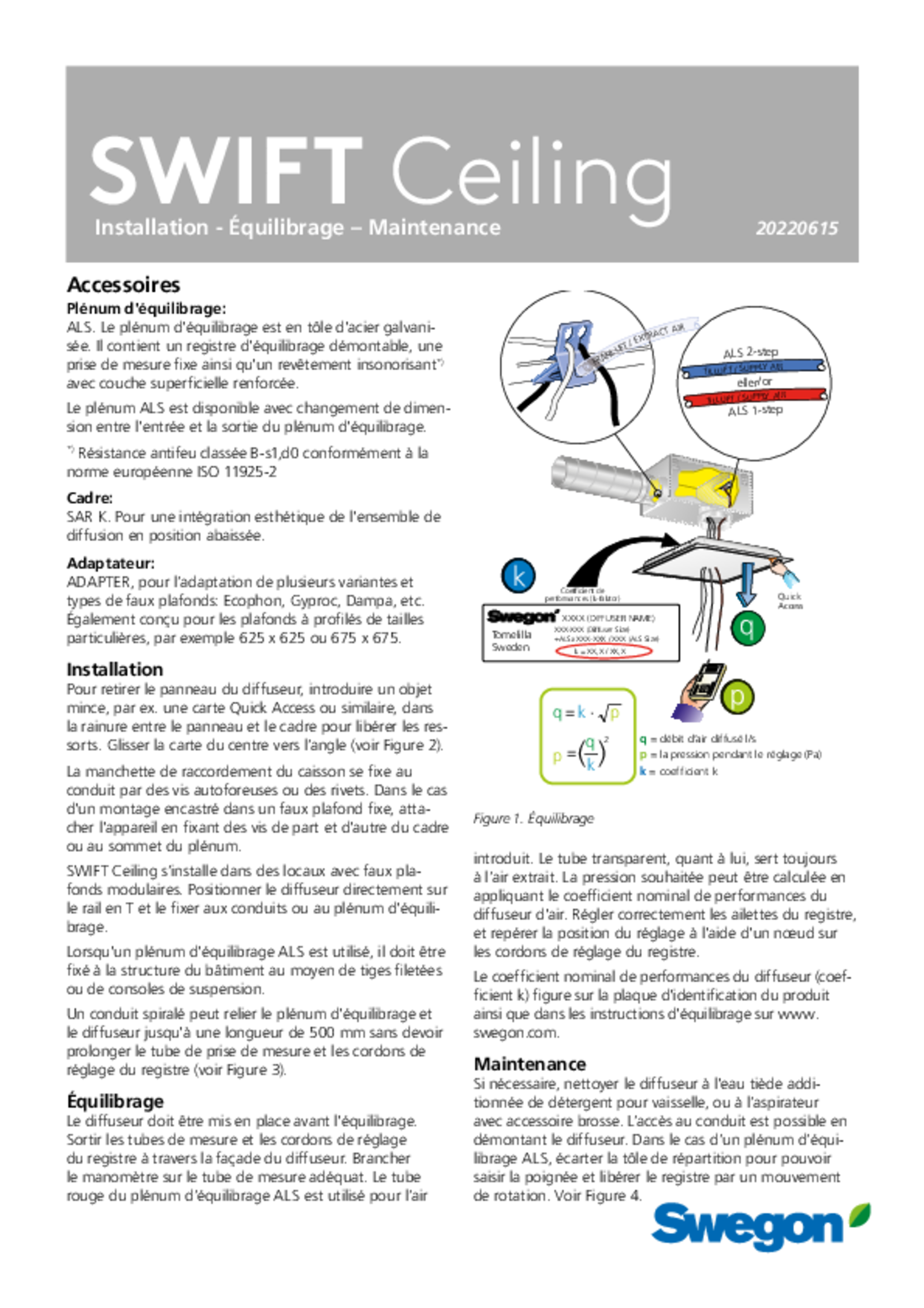 | Installation, Équilibrage, Maintenance (pdf 849.85kB) | SWIFT Ceiling a | Instructions | |