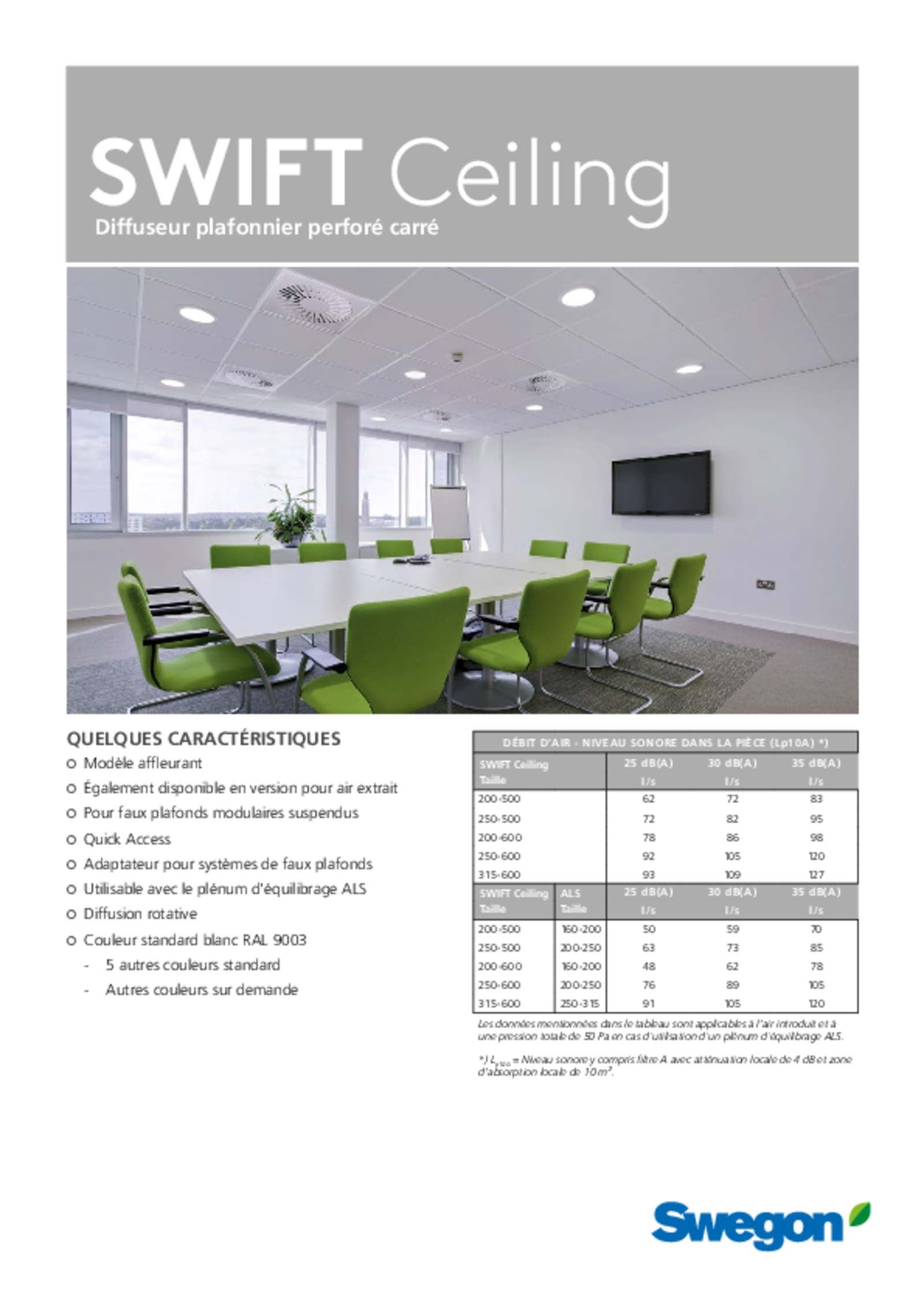 | Diffuseur plafonnier perforé carré (pdf 950.94kB) | SWIFT Ceiling a | Brochure technique | |
