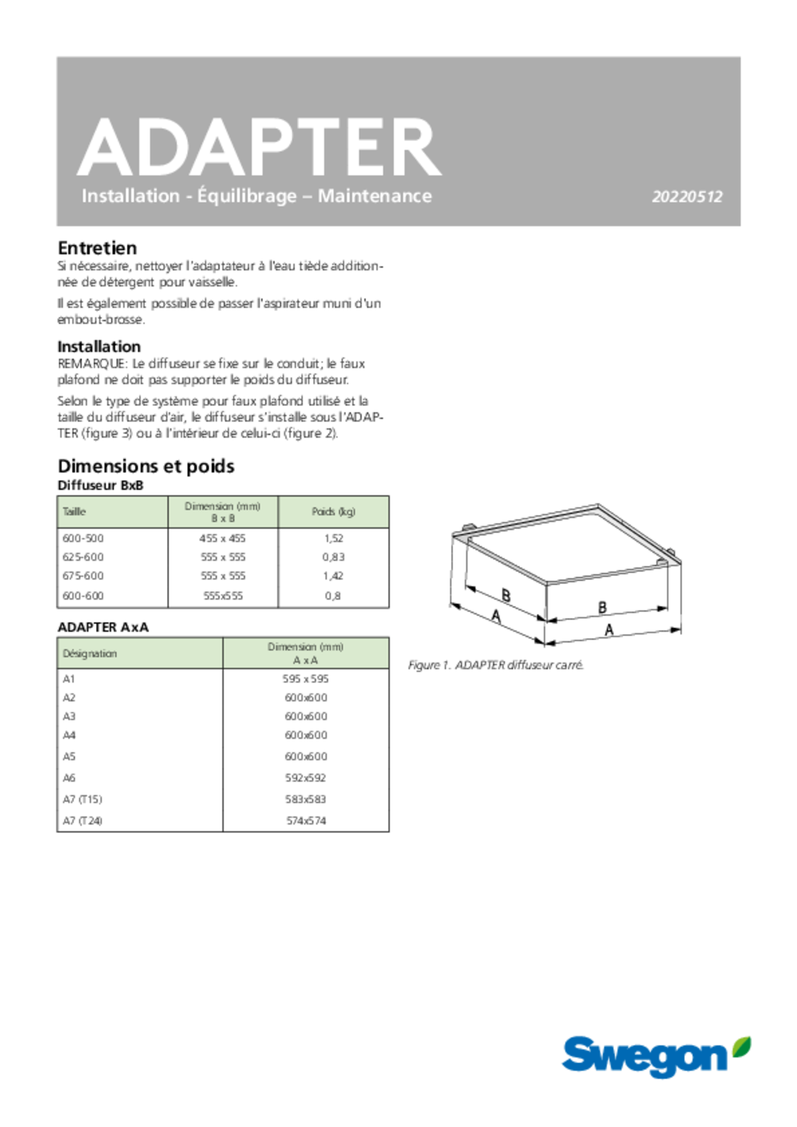 • Adapter s’utilise avec les diffuseurs de la gamme Ceiling Collection