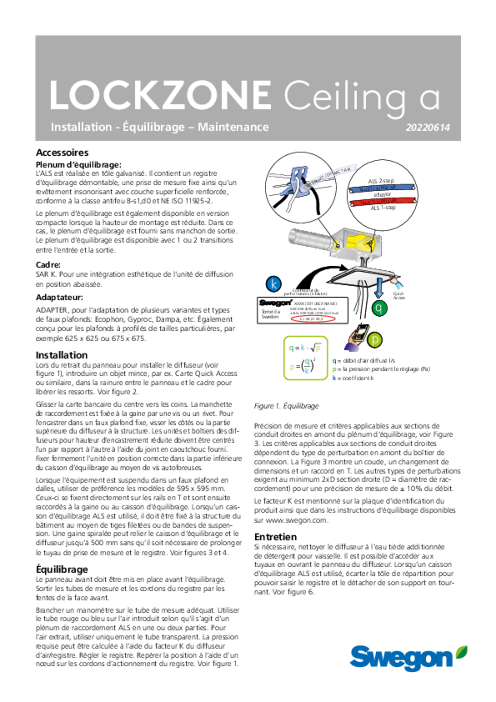 | Installation, Équilibrage, Maintenance (pdf 1.79MB) | LOCKZONE Ceiling a | Instructions | |