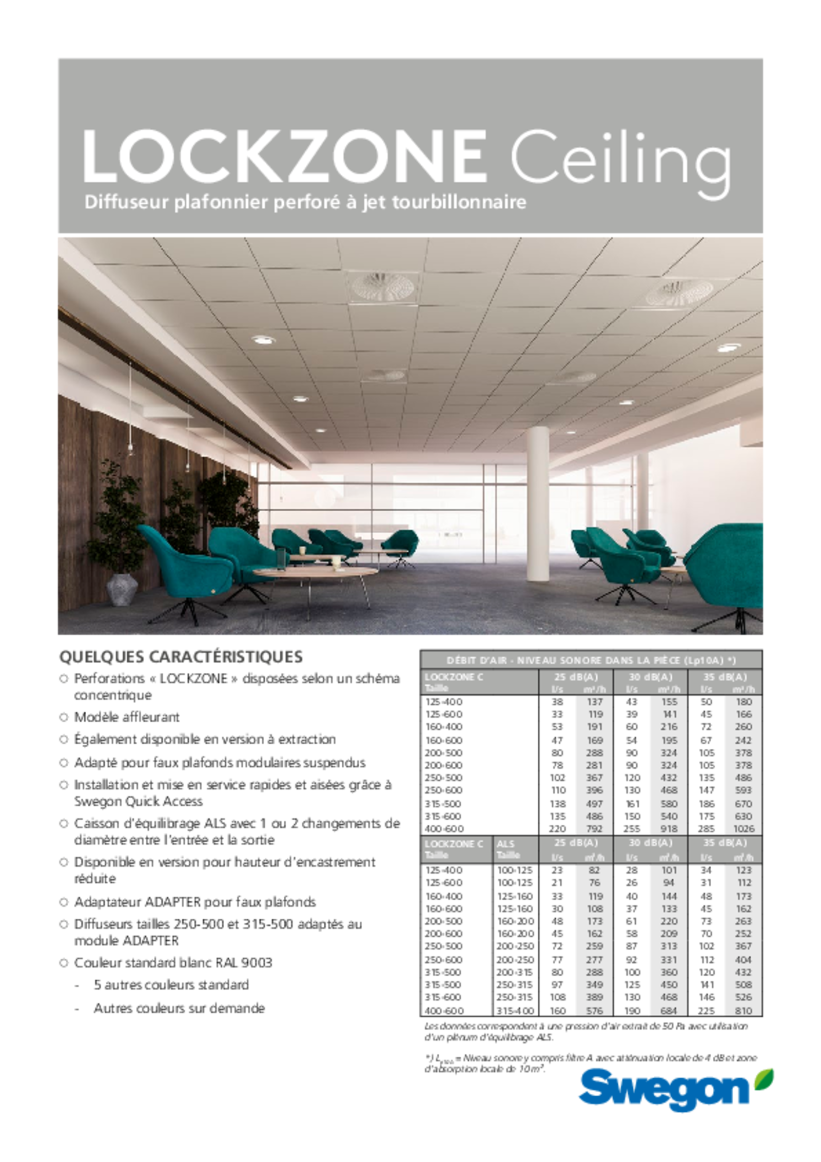 | Diffuseur plafonnier perforé à jet tourbillonnaire (pdf 2.45MB) | LOCKZONE Ceiling a | Brochure technique | |