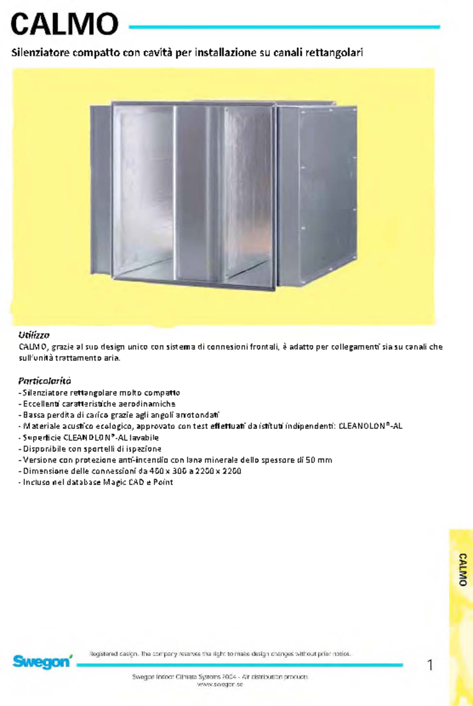 | Sound attenuator with recessed connection for rectangular ducts (pdf 1.6MB) | CALMO | Catalogo tecnico | |
