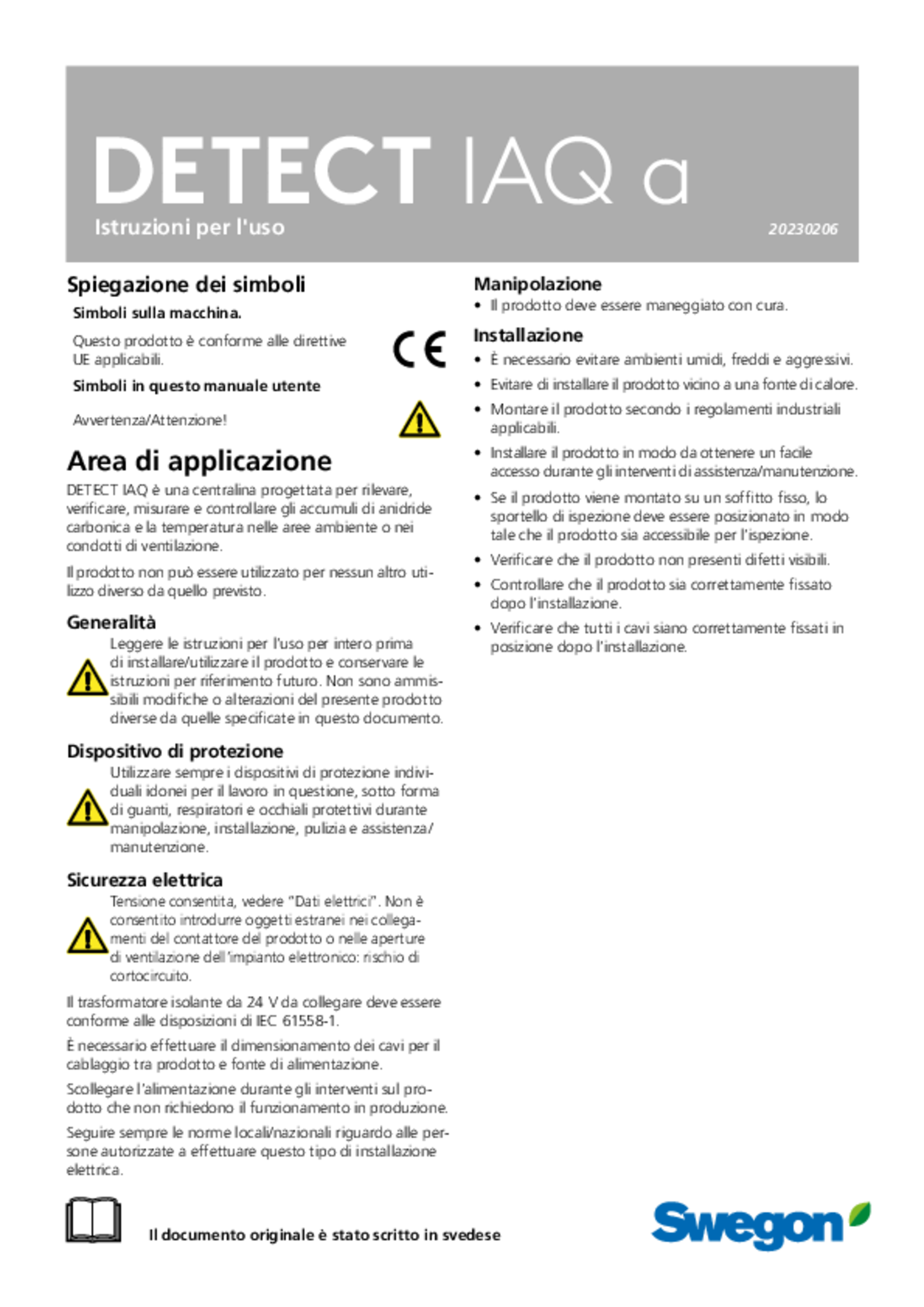 Istruzioni per l'uso (pdf 898.11kB) DETECT IAQ a Manuale IOM