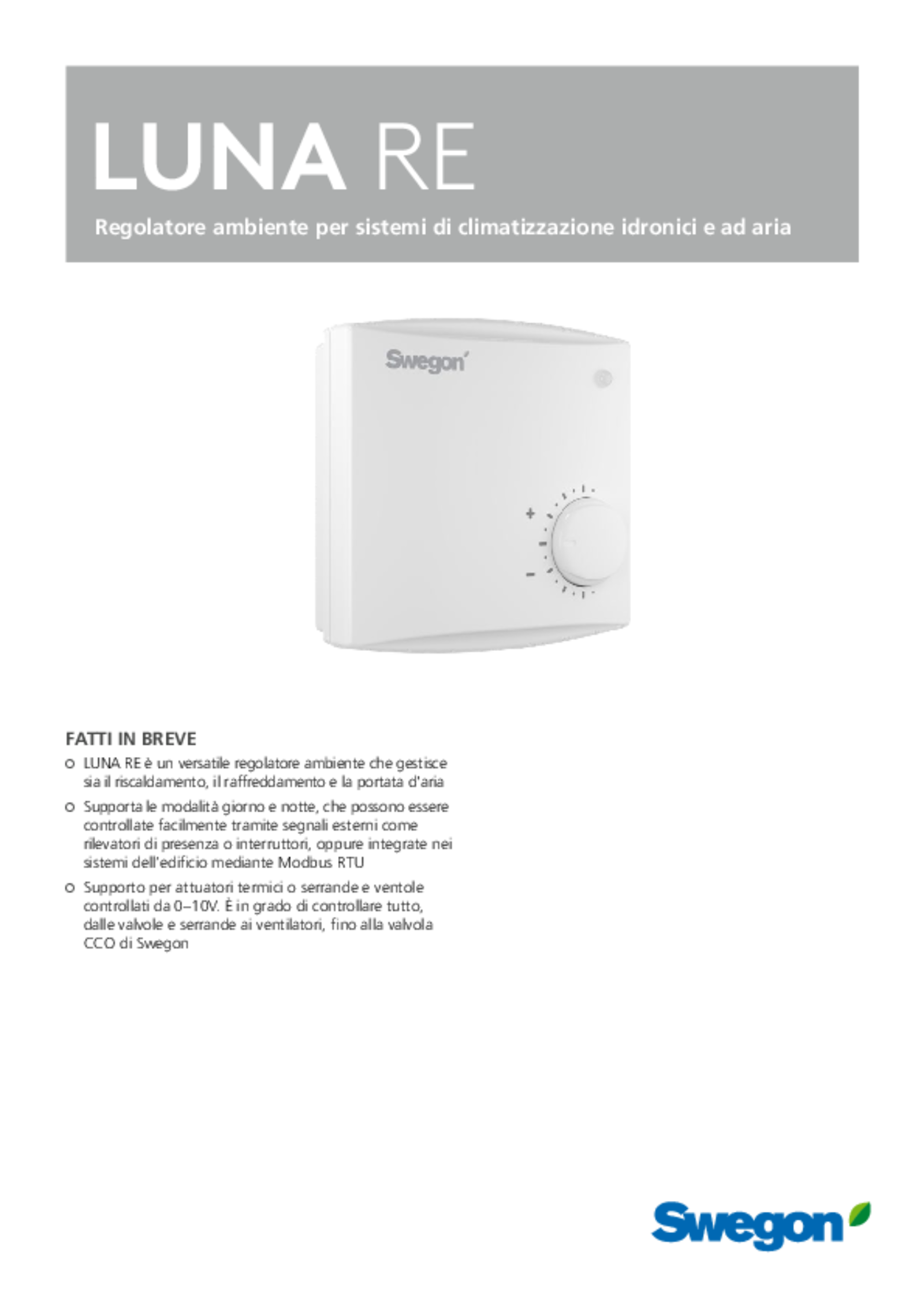 | Regolatore ambiente per sistemi di climatizzazione idronici e ad aria (pdf 561.05kB) | LUNA RE e | Catalogo tecnico | |