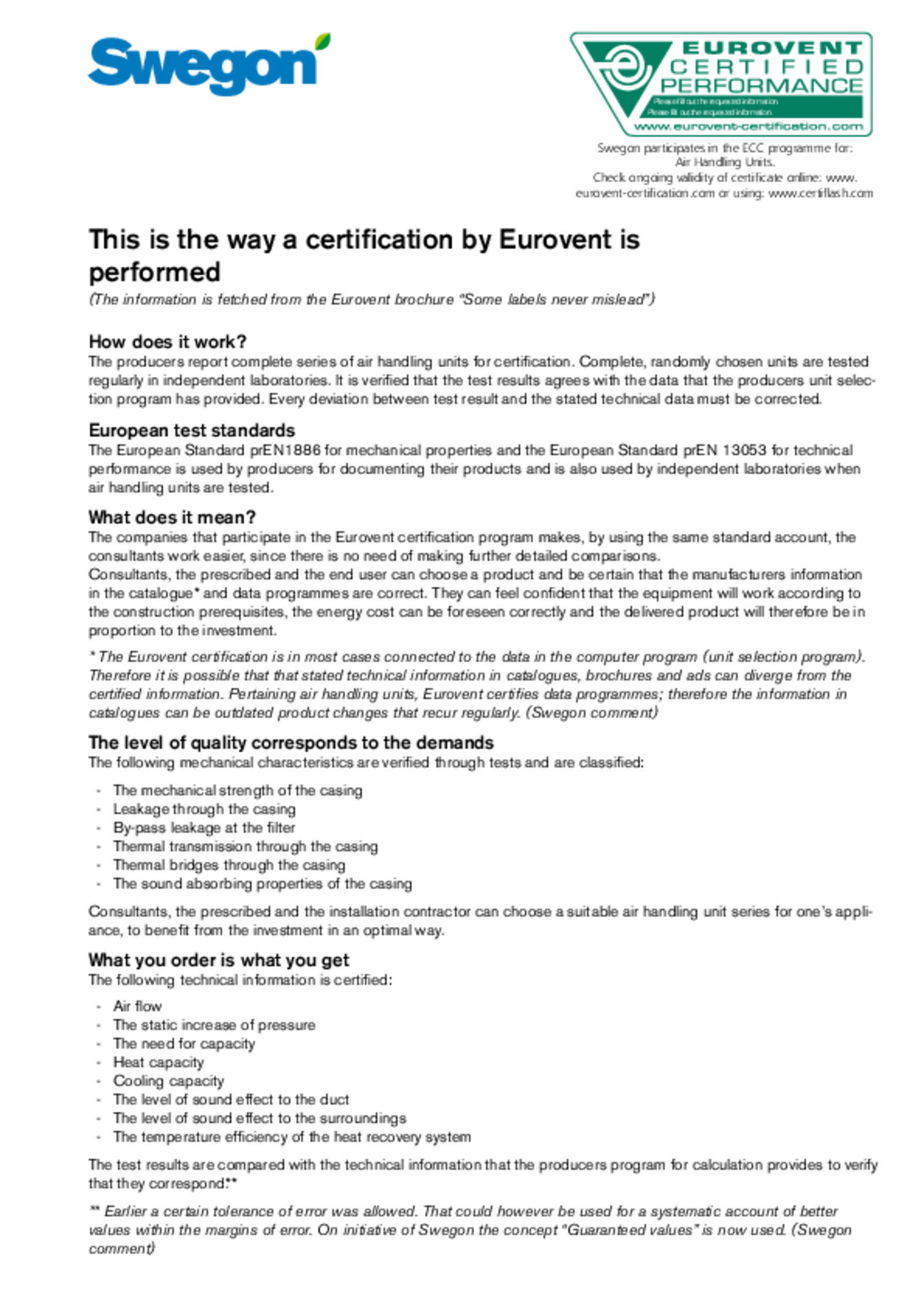 With high quality hardware and smart control, Swegon’s GOLD PX can achieve superb energy recovery, despite its compact size. The solution is to combine the efficient counter flow heat exchanger RECOflow with the innovative defrosting control RECOfrost, which through continuous monitoring of the heat exchanger’s status ensures that defrosting occurs adaptive in real time. In this way energy losses are always kept to a minimum.